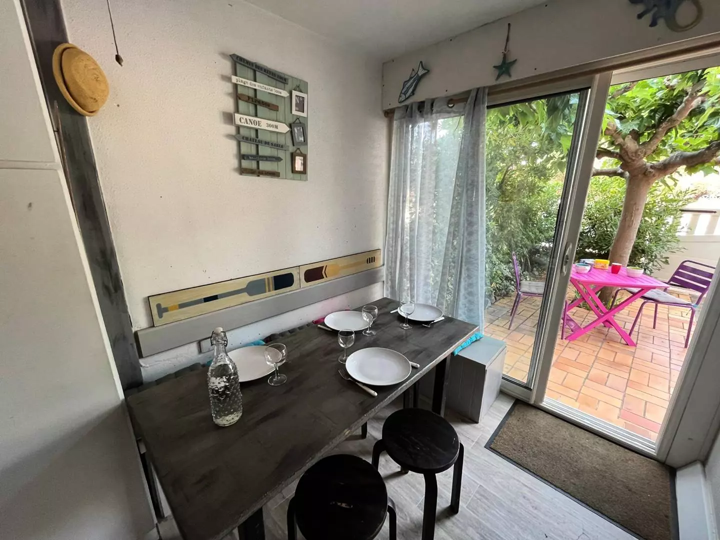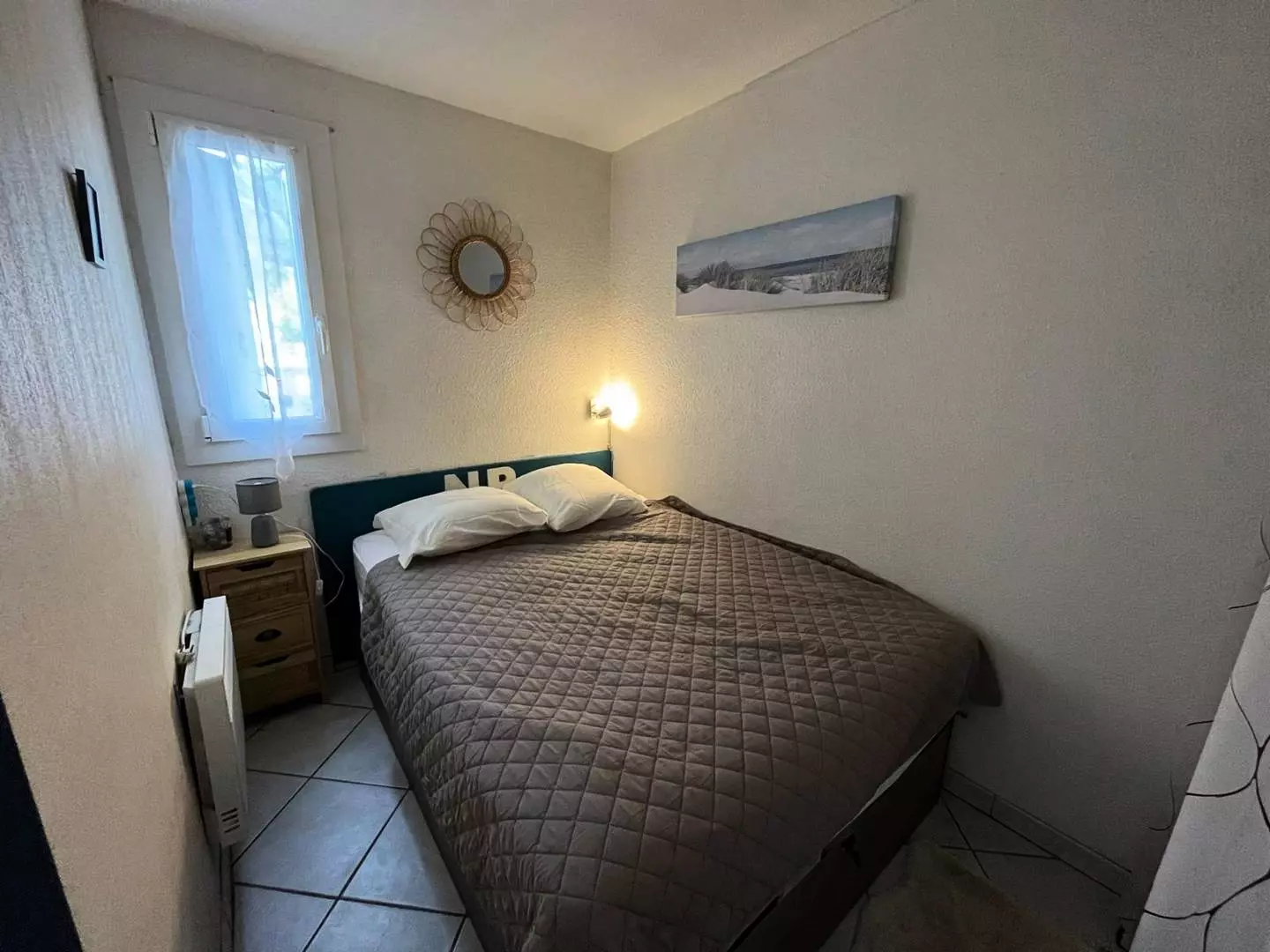 Residence located near shops and the beach, this apartment is composed of a main room with a sofa bed for 2 people, television and equipped kitchen area: ceramic hob, top refrigerator, microwave, a dining area. In the entrance you have a high bed for 1 person. The apartment also has a bedroom with a double bed for 2 people (140cm) with storage. You will also have access to a pleasant terrace to enjoy your meals and the sun!