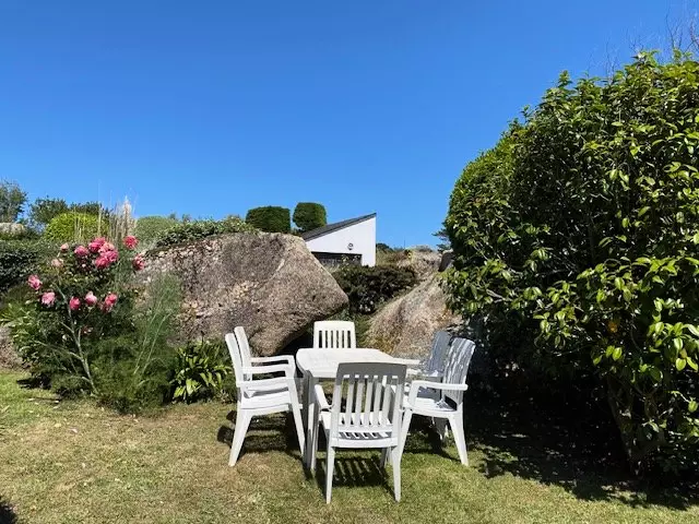 House amenities: fridge-freezer, electric hob, dishwasher, electric oven and microwave, classic coffee maker, toaster, kettle. Washing machine and dryer. Sofa and armchairs, TV and Wi-Fi connection. 3 beds 160x200 (recent bedding). Pillows and duvets for the beds. Garden furniture, parasol and electric barbecue. Large garden dotted with rocks.