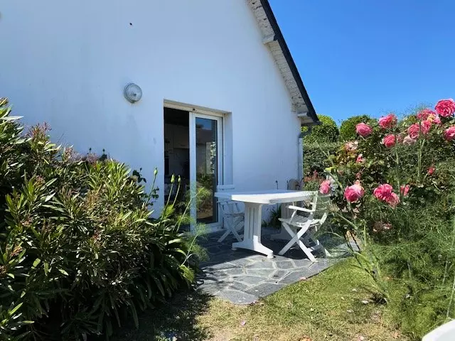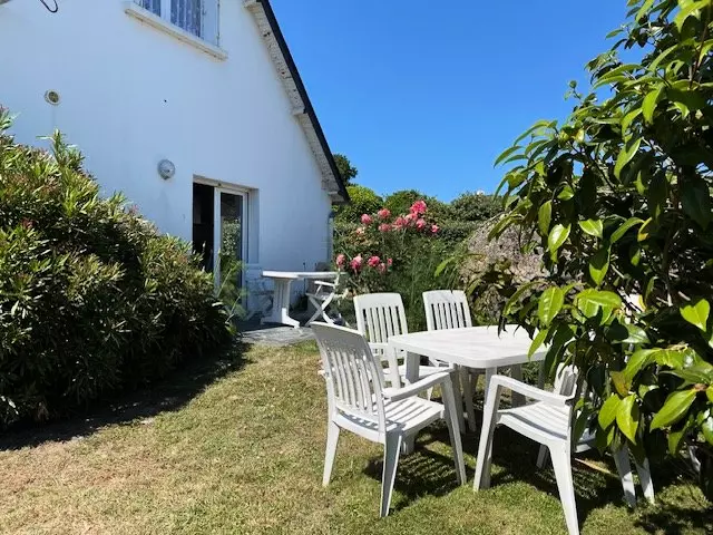 Guz Heol, a charming rustic house located just 100 meters from the Grève Blanche beach. It boasts a 2-star comfort rating for 6 people. With a surface area of 120 m², it includes an entrance hall, a large dining room opening onto the living room, television and internet connection, a fully equipped kitchen, a bedroom, a bathroom with shower and bathtub, and a separate toilet. Upstairs, two bedrooms, a mezzanine, a small shower room, and a separate toilet. Enclosed garden and private parking. Linen optional. Pets welcome. Non-smoking accommodation. Final cleaning included.