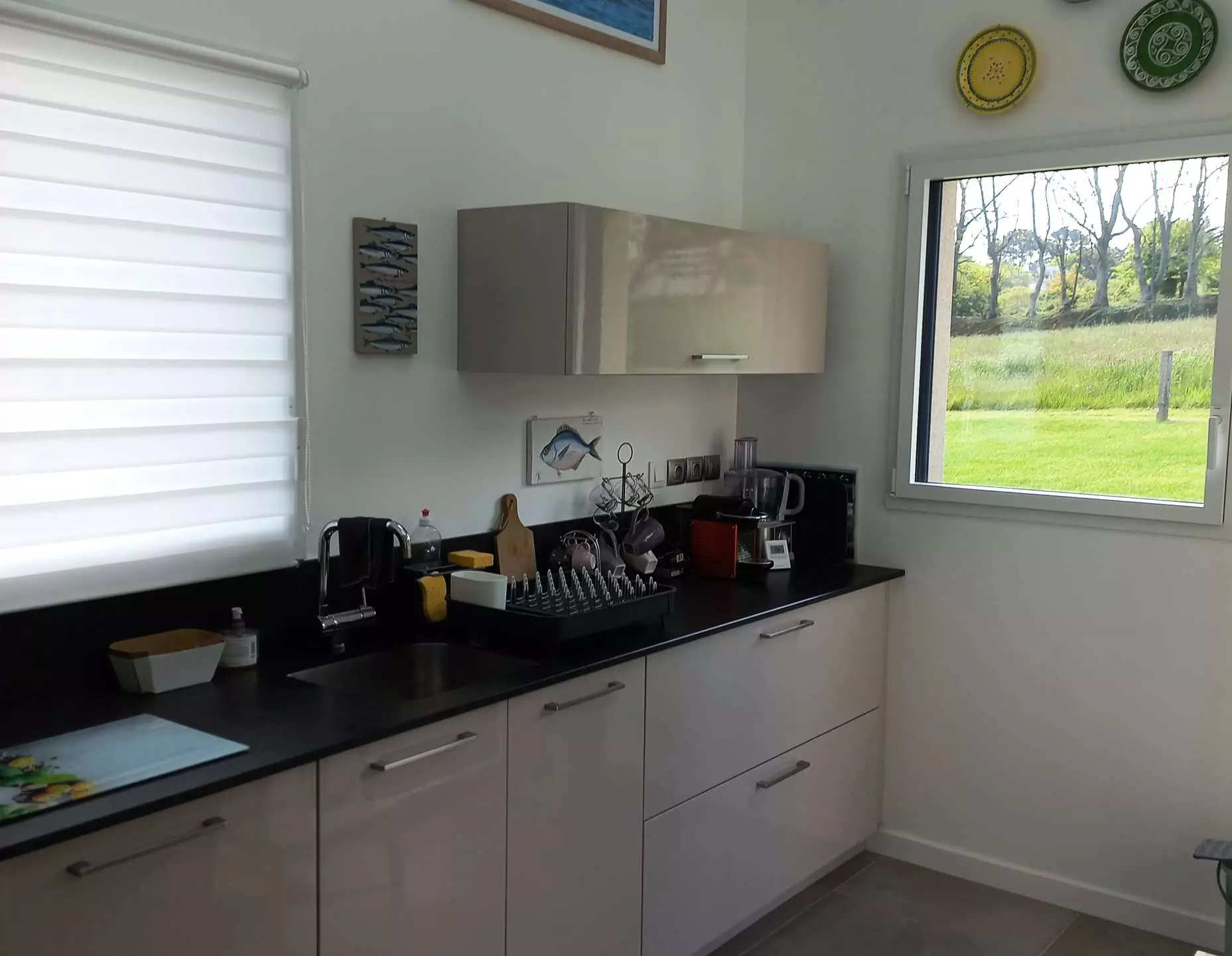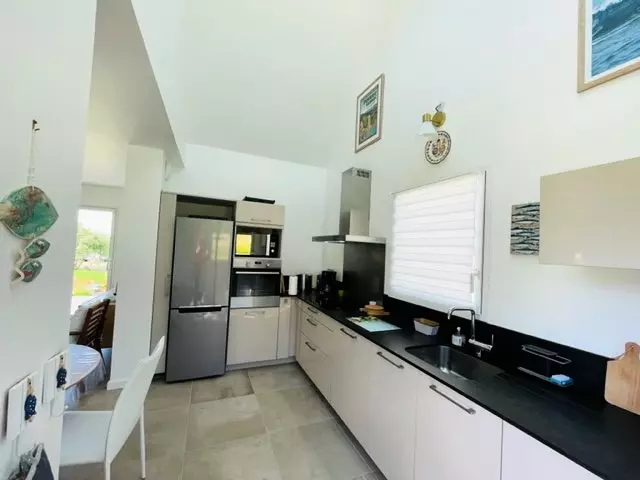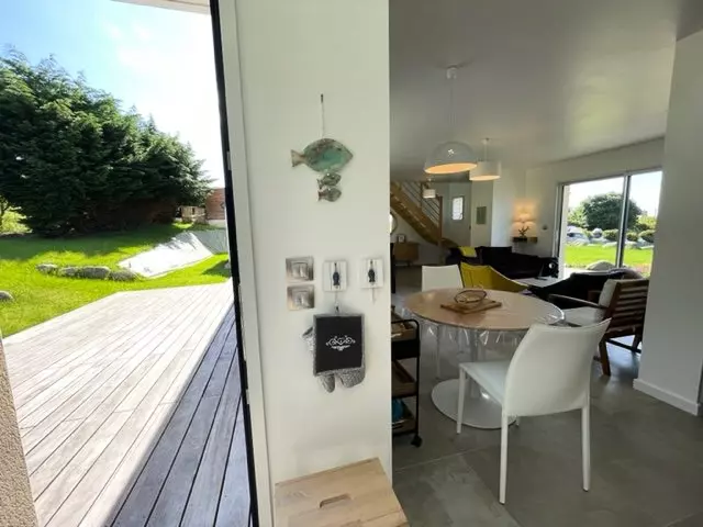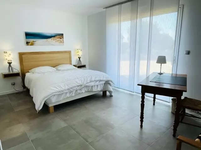 Induction hob, electric oven, microwave, fridge-freezer, crockery and cutlery, electric coffee maker, dishwasher, toaster, kettle, television, sofa and armchairs, 4G internet box, dining tables and chairs, 2 beds 160x200 cm, 2 beds 80x200 cm (can be joined), work space (ground floor bedroom), garden furniture, large parasol and barbecue. Washing machine in the adjoining garage.