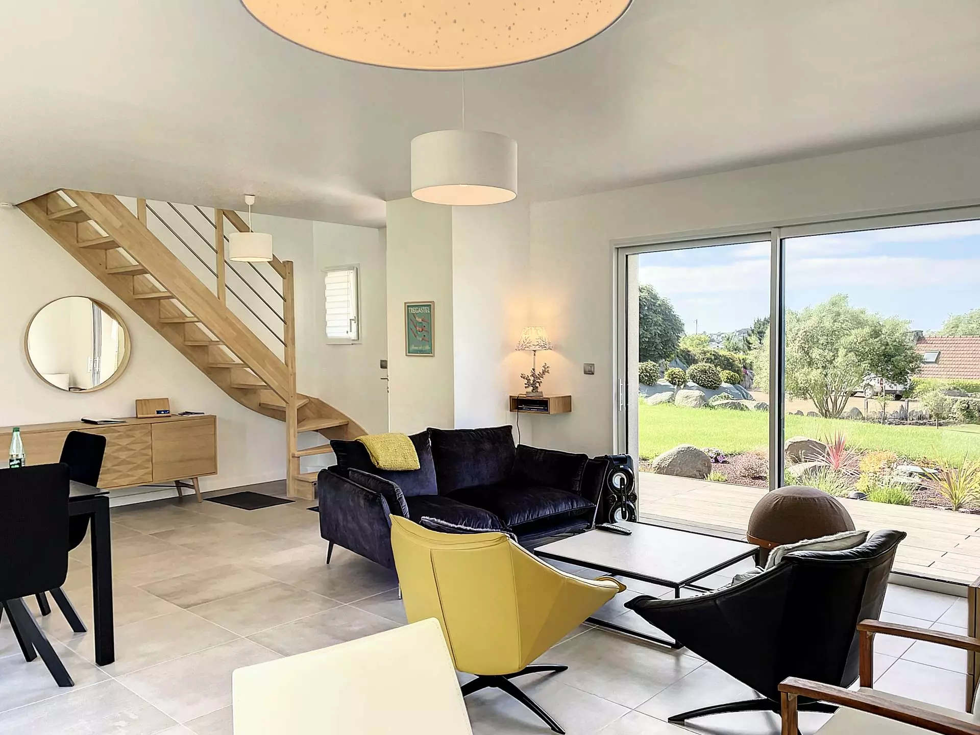 Recent 3-star house for 6 people. Beautiful amenities and a relaxing setting in Trégastel on the Pink Granite Coast. The house is 105 m² including an entrance hall leading to a living room, an open kitchen, a bedroom with its own bathroom, and a toilet with a washbasin. Upstairs: two bedrooms, two bathrooms, and a toilet. Garden-side terrace with lovely countryside views. Garage and private parking. Internet access (Travel Wifi box). Non-smoking accommodation, pets not allowed, linen optional. Final cleaning included.