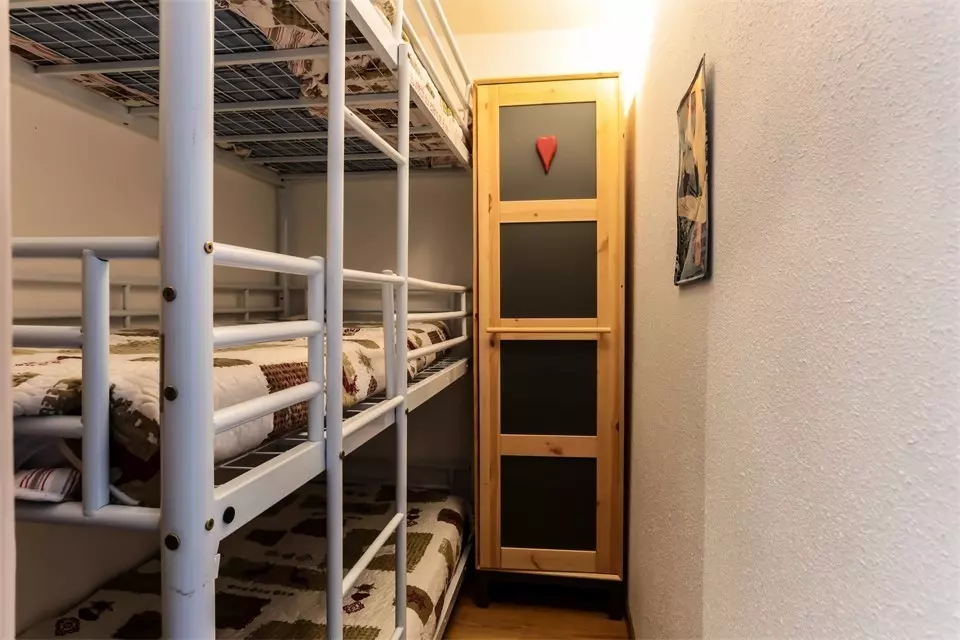 - 1 bedroom with double bed and TV and 1 cabin with 3 bunk beds. Equipped with duvets.