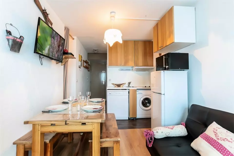 Located in the La Vanoise residence, on the pedestrian street of Caron in the heart of Val Thorens. Ideal if you want to experience Val Thorens to the fullest: slopes, restaurants, shops, and bars right at the foot of the residence.