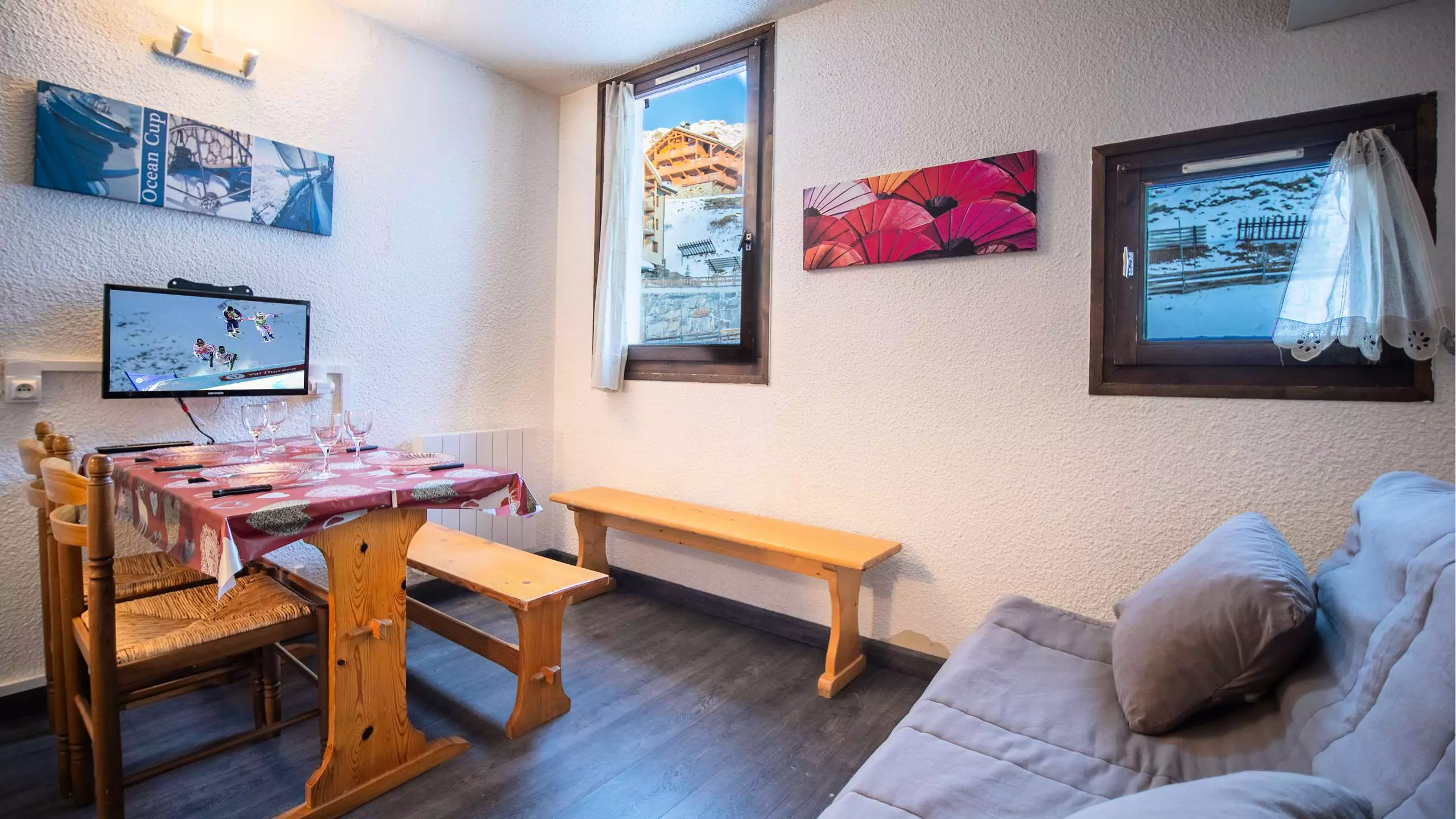 Located in the Roche Blanche residence, Grande Rue, in the center of Val Thorens. Close to shops and restaurants and just a short walk from the slopes.