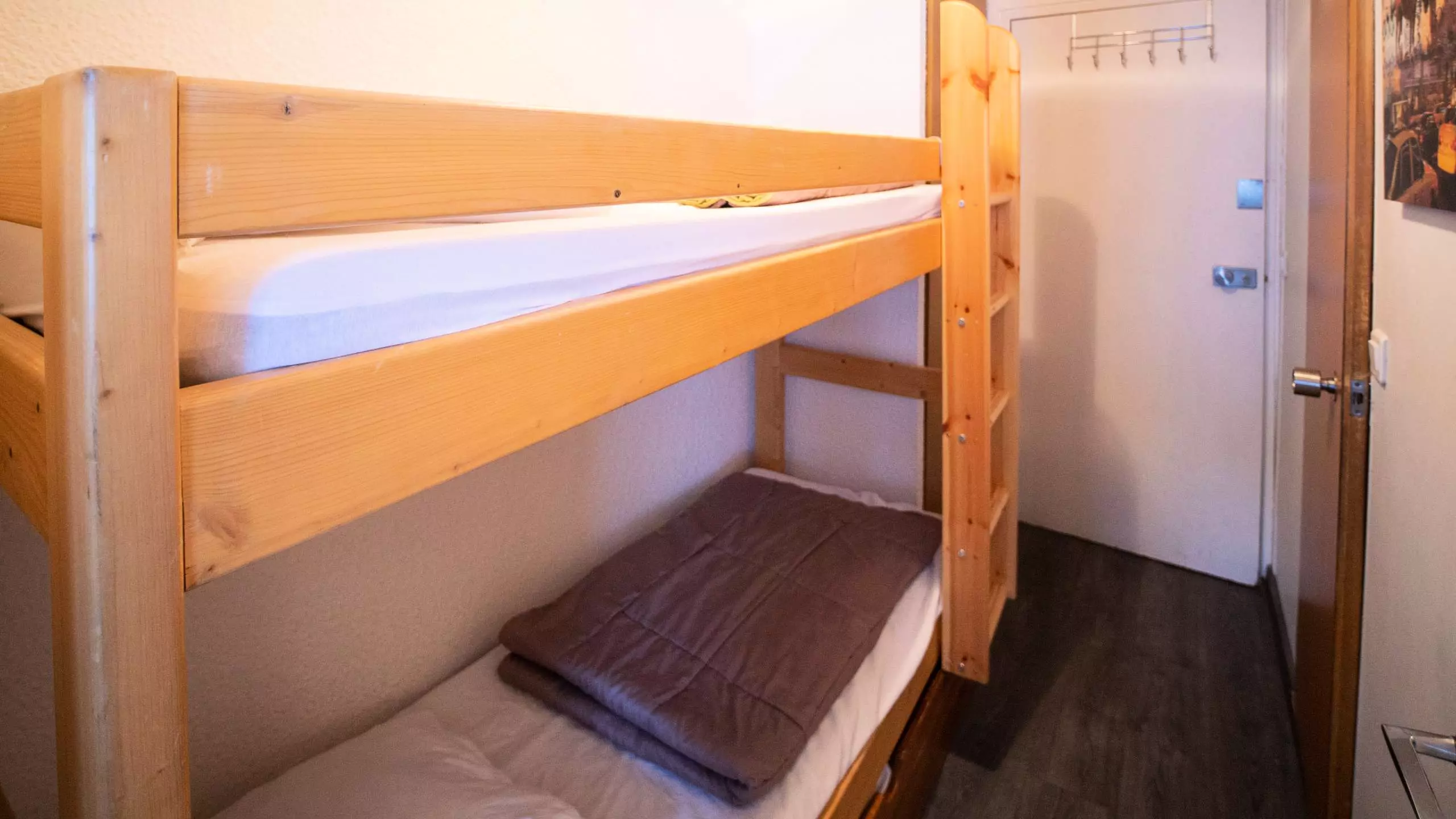 - A mountain corner with bunk beds equipped with duvets and pillows. Please note that these are extra beds to use if you do not want to sleep 2 in the sofa bed in the living room.