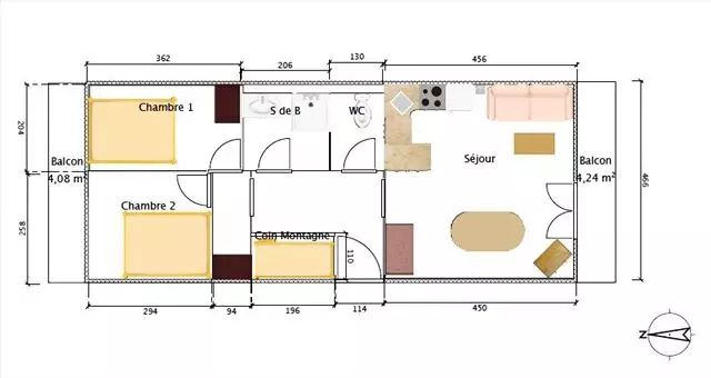 Entrance (separated from the living room by a door/ 19m²): 2 bunk beds (2x 90x190cm)
