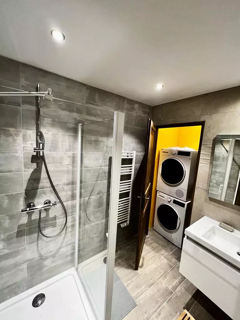 Shower room (in bedroom 1): sink, shower, washing machine and dryer.