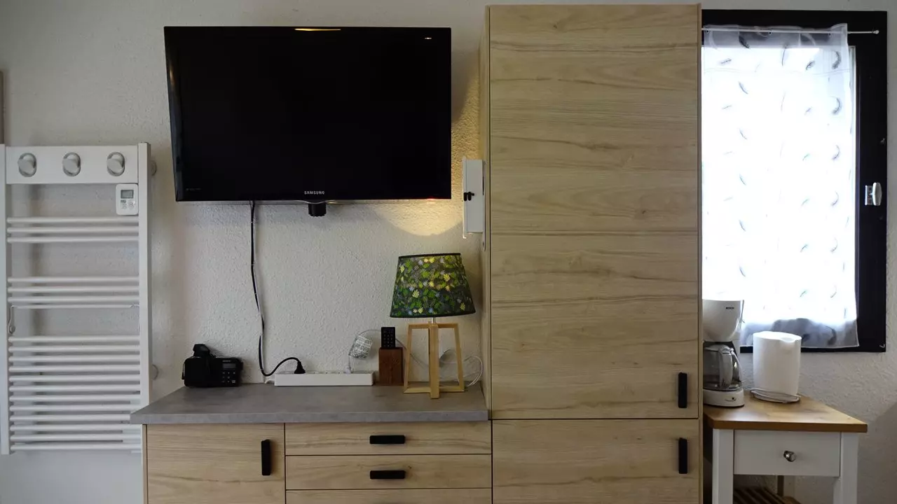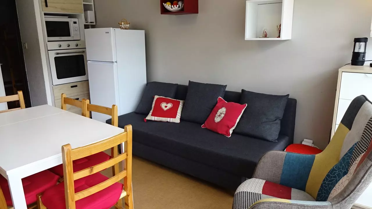 In the "PYRENE" residence in the village of VIELLE-AURE. Well-equipped 4/6 person apartment on the ground floor with an enclosed garden facing EAST with a beautiful view of the mountains, is composed of a living room, a kitchenette equipped with a fridge-freezer, induction hob, microwave and oven and a dishwasher, a bedroom with a 140 cm bed and a sleeping area between the living room and the bedroom with 2 bunk beds, shower room with a washing machine and separate toilet. Lino floor. Balcony. Ski locker. Outdoor parking.