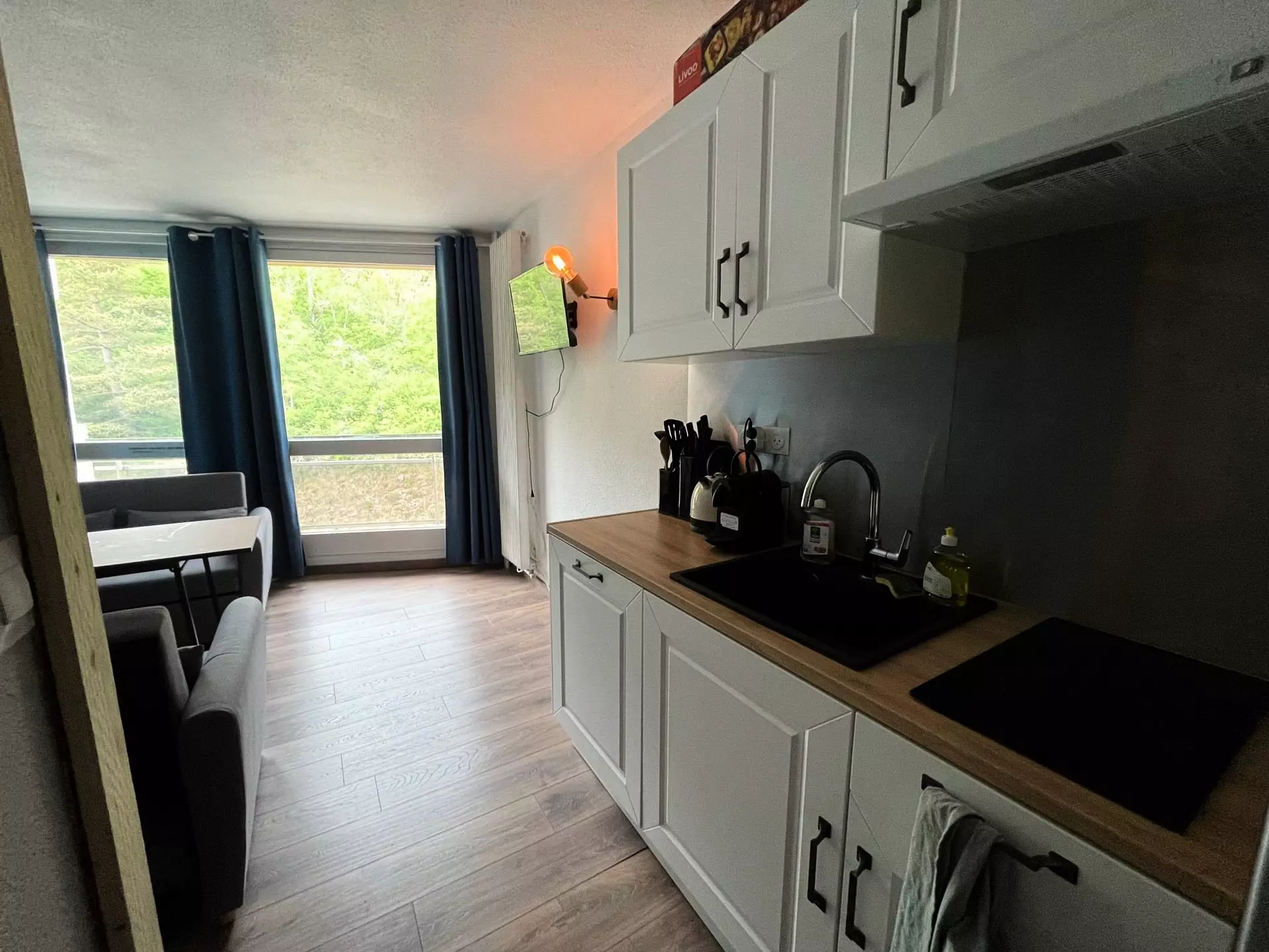 At the foot of the ski area, this 15m2 studio with 2 beds on the 8th floor with elevator, welcomes you for a family stay close to all amenities.