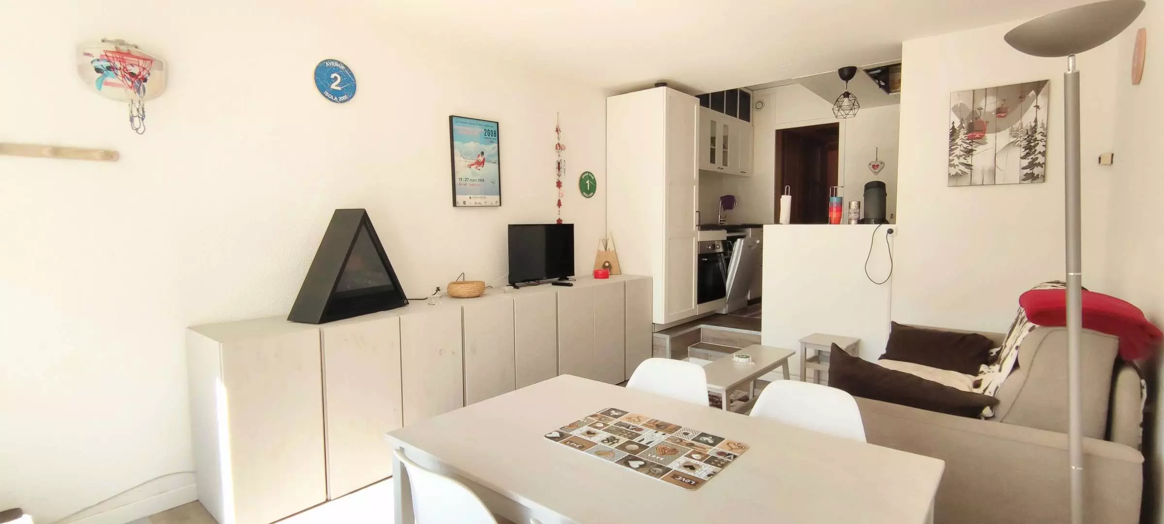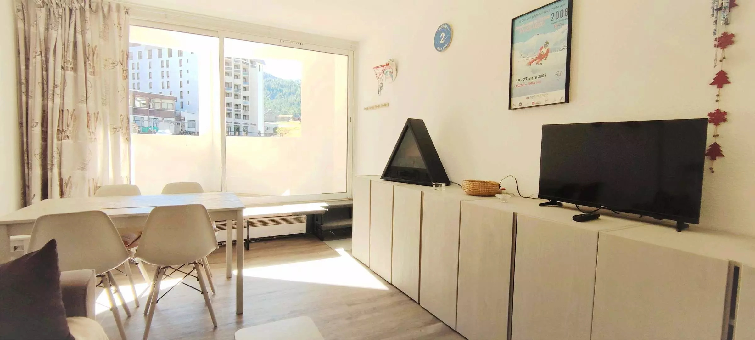 PVA2 2* studio for 4 people, located in a building in the heart of the resort in the "Front de Neige" complex (resort center), at the foot of the slopes, above the shopping arcade and in the immediate vicinity of sports activities. Located on the 1st floor without elevator. Above the central square.