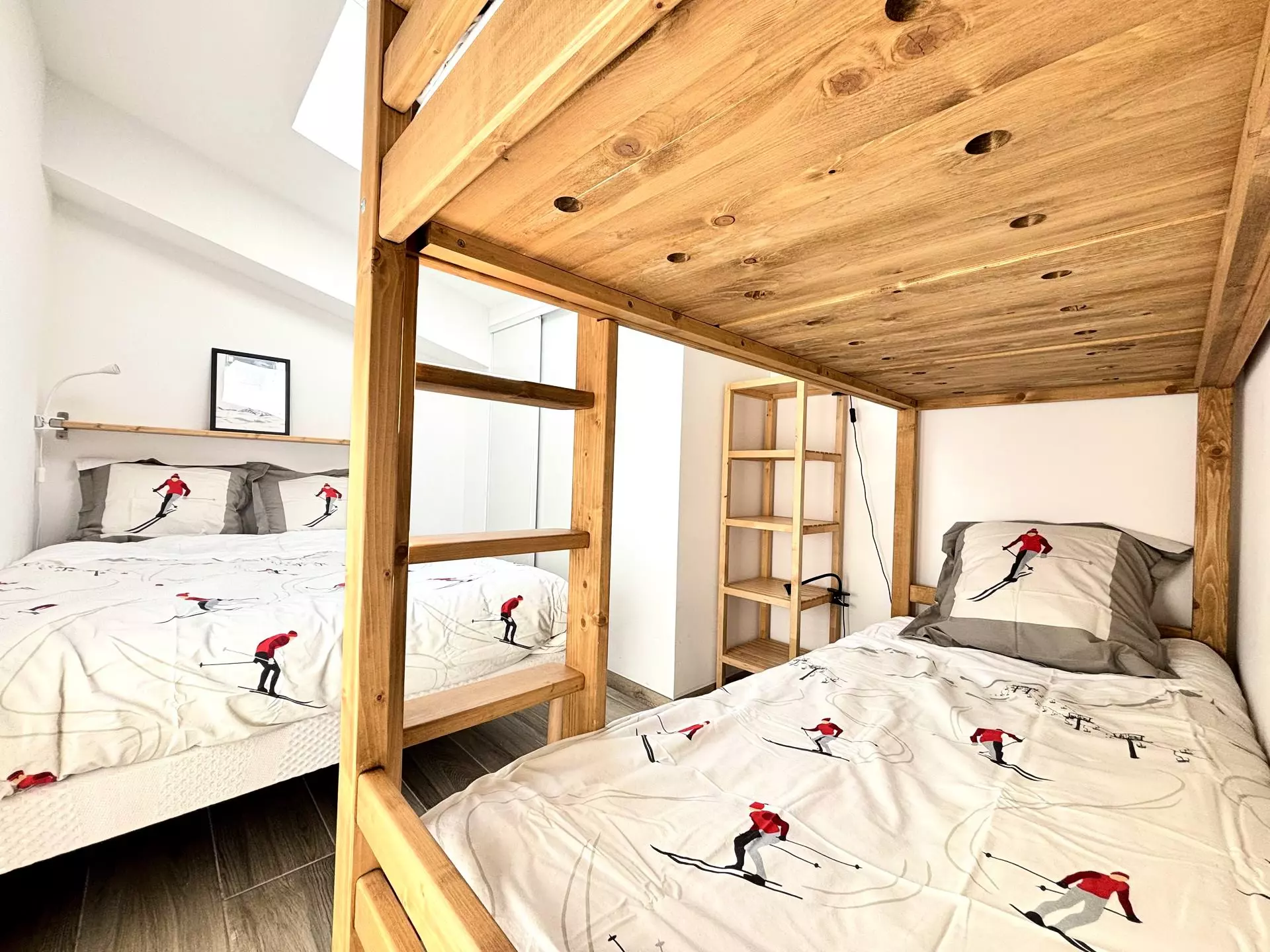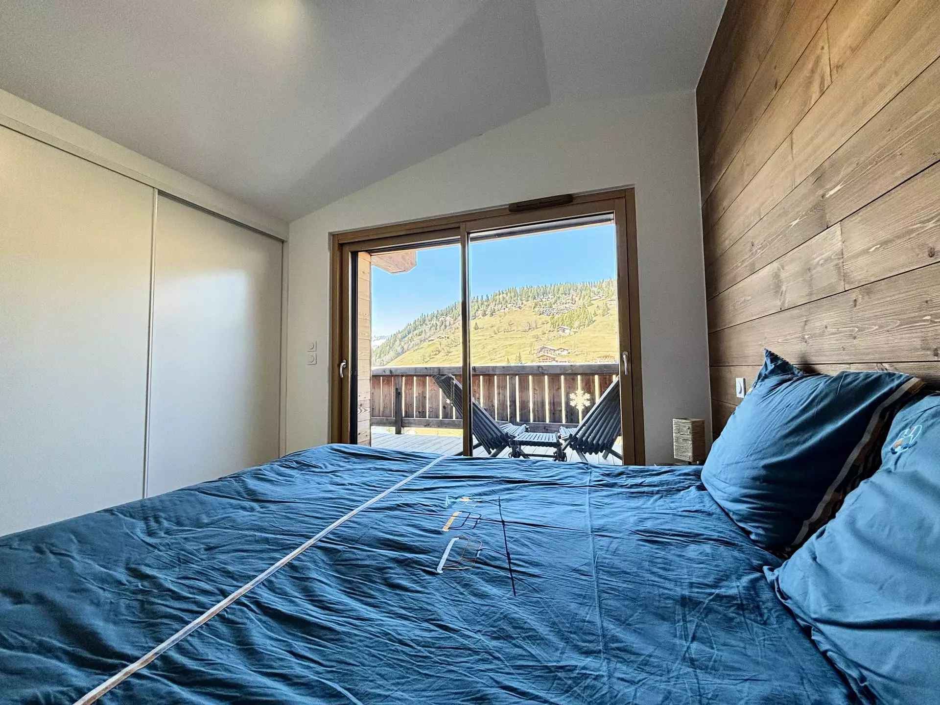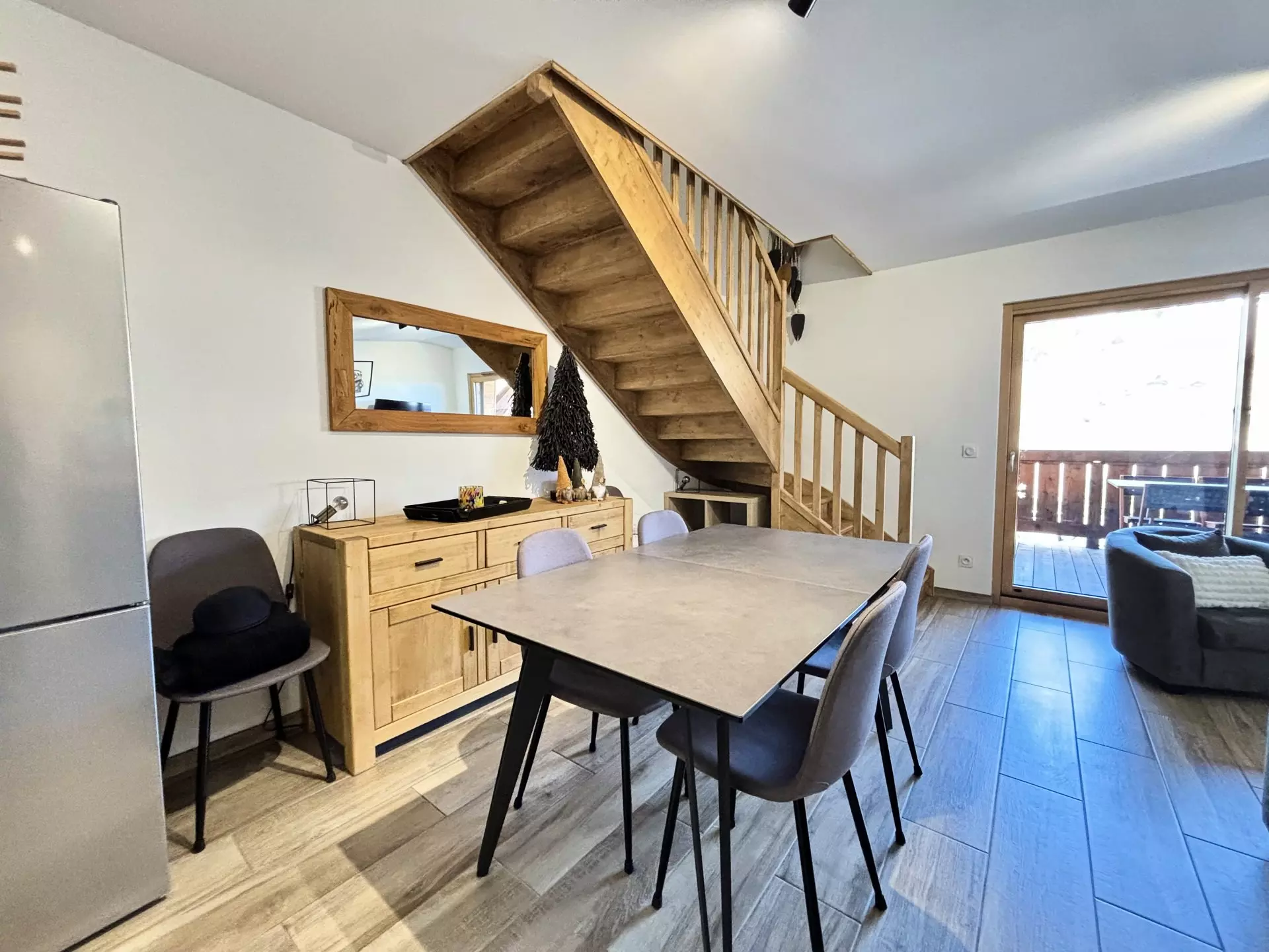 This brand new 55m² duplex apartment sleeps 4 to 6 people and is located on the 2nd and 3rd floors of a building with an elevator. The building features two northwest-facing terraces with views of Mont Charvin and the surrounding mountains.