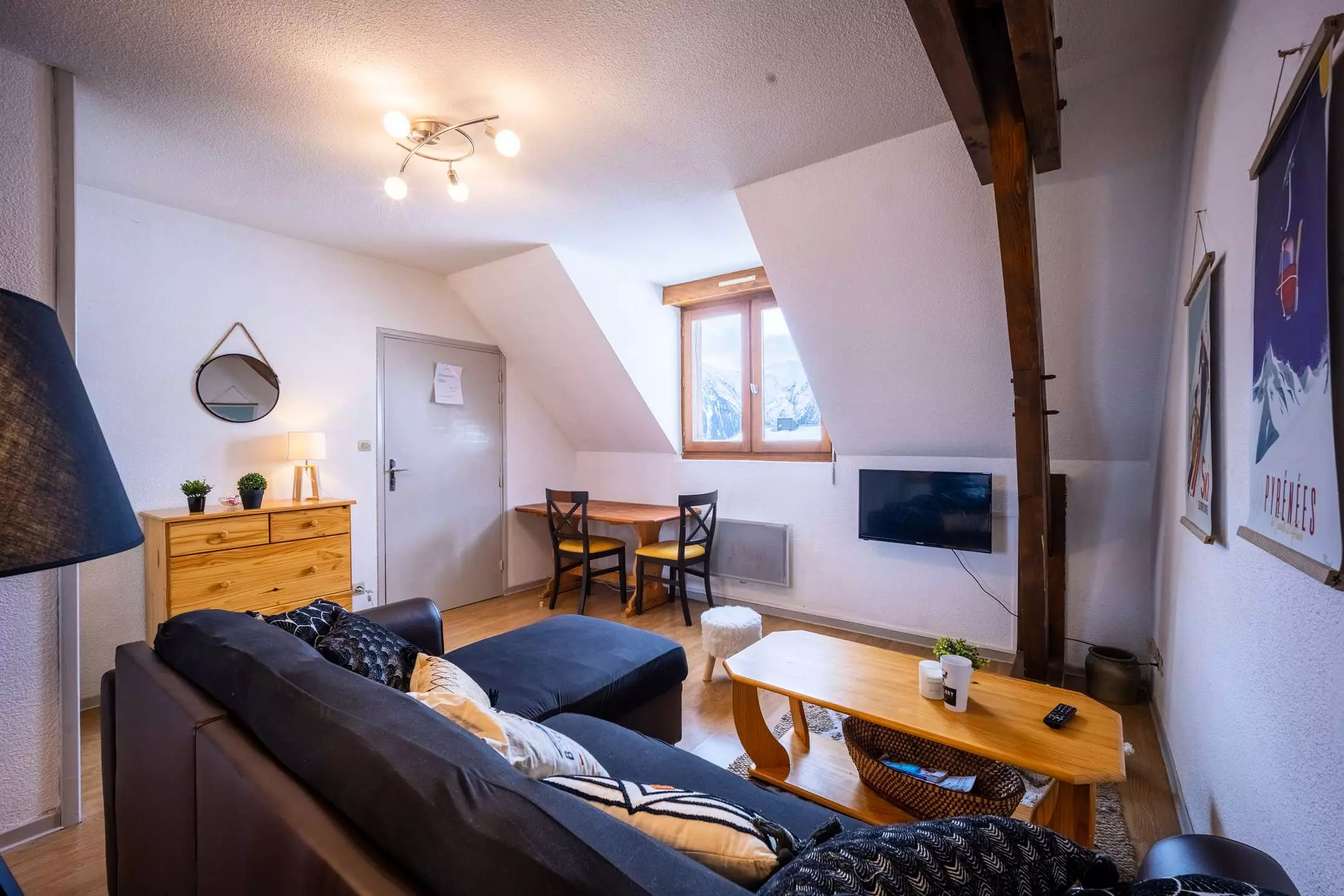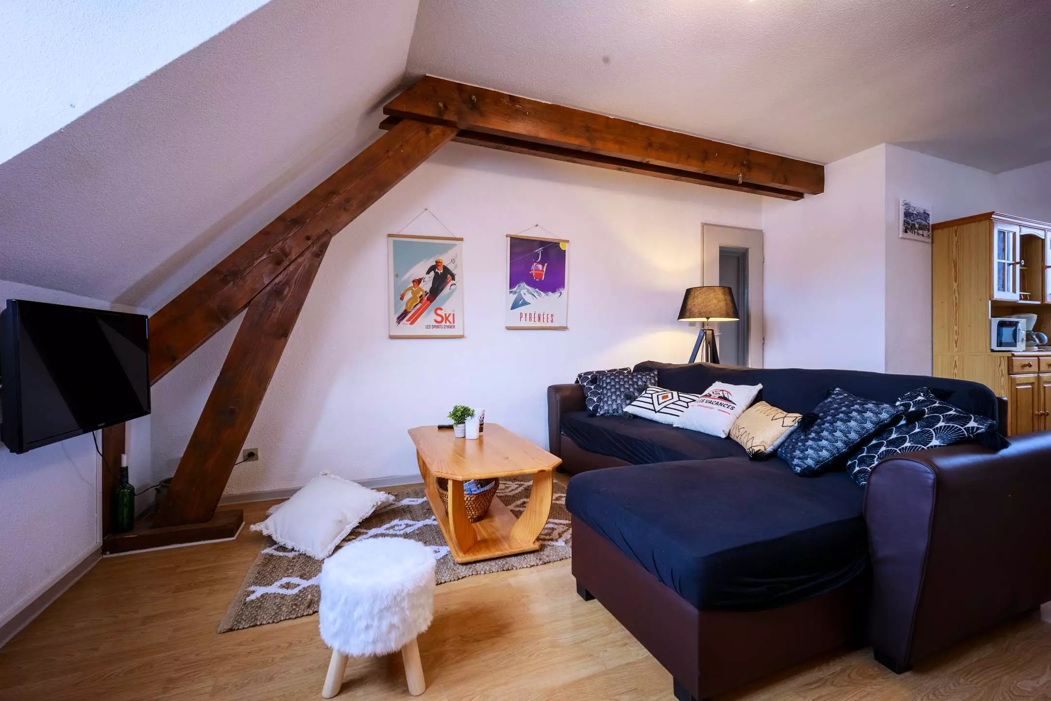 On the 2nd floor with a surface area of 62 m2, with a southern exposure. It is located at the foot of the slopes, above the Ski School, perfect location for families!
