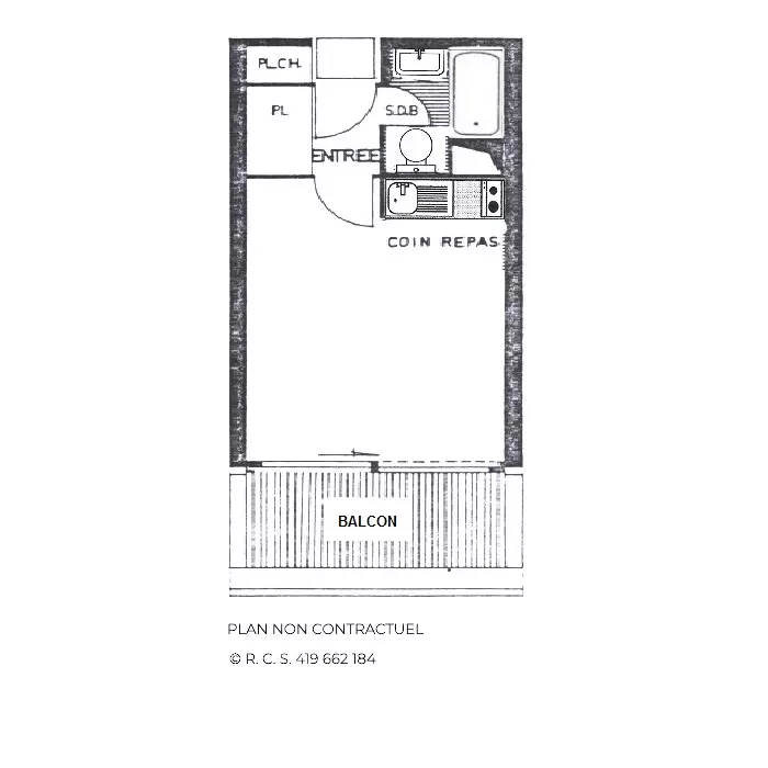 Combes N°308, Studio, 3 people, 20 m², 3rd floor by elevator, southwest-facing balcony, mountain view