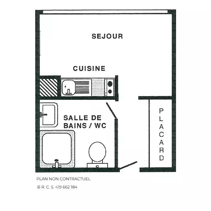 Residence Trois Marches (No. 835), studio for 2 people, 13 m², on the 8th floor by elevator, facing North-East, without balcony