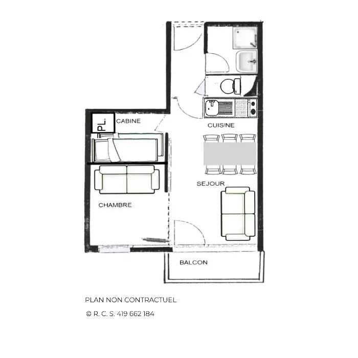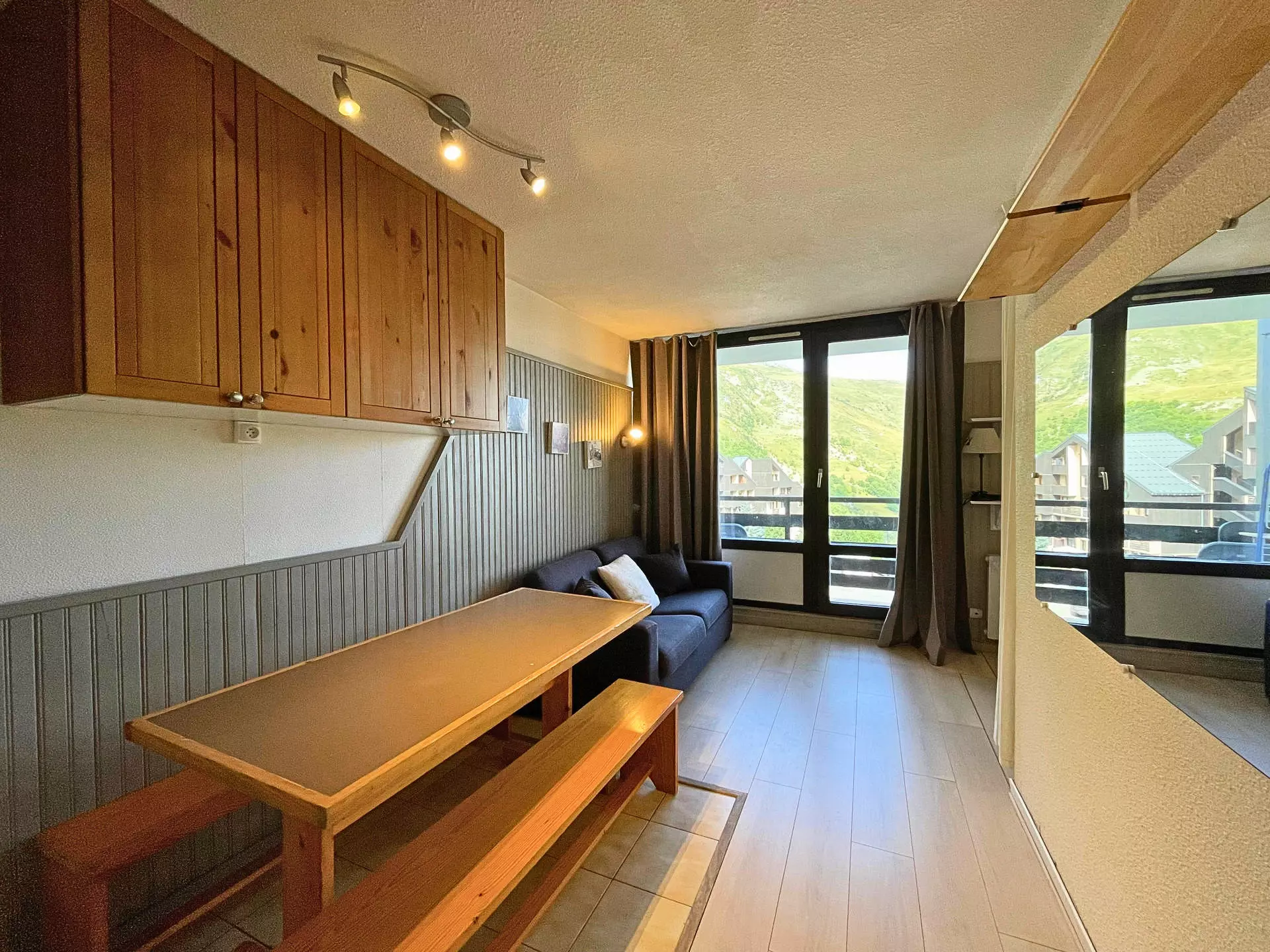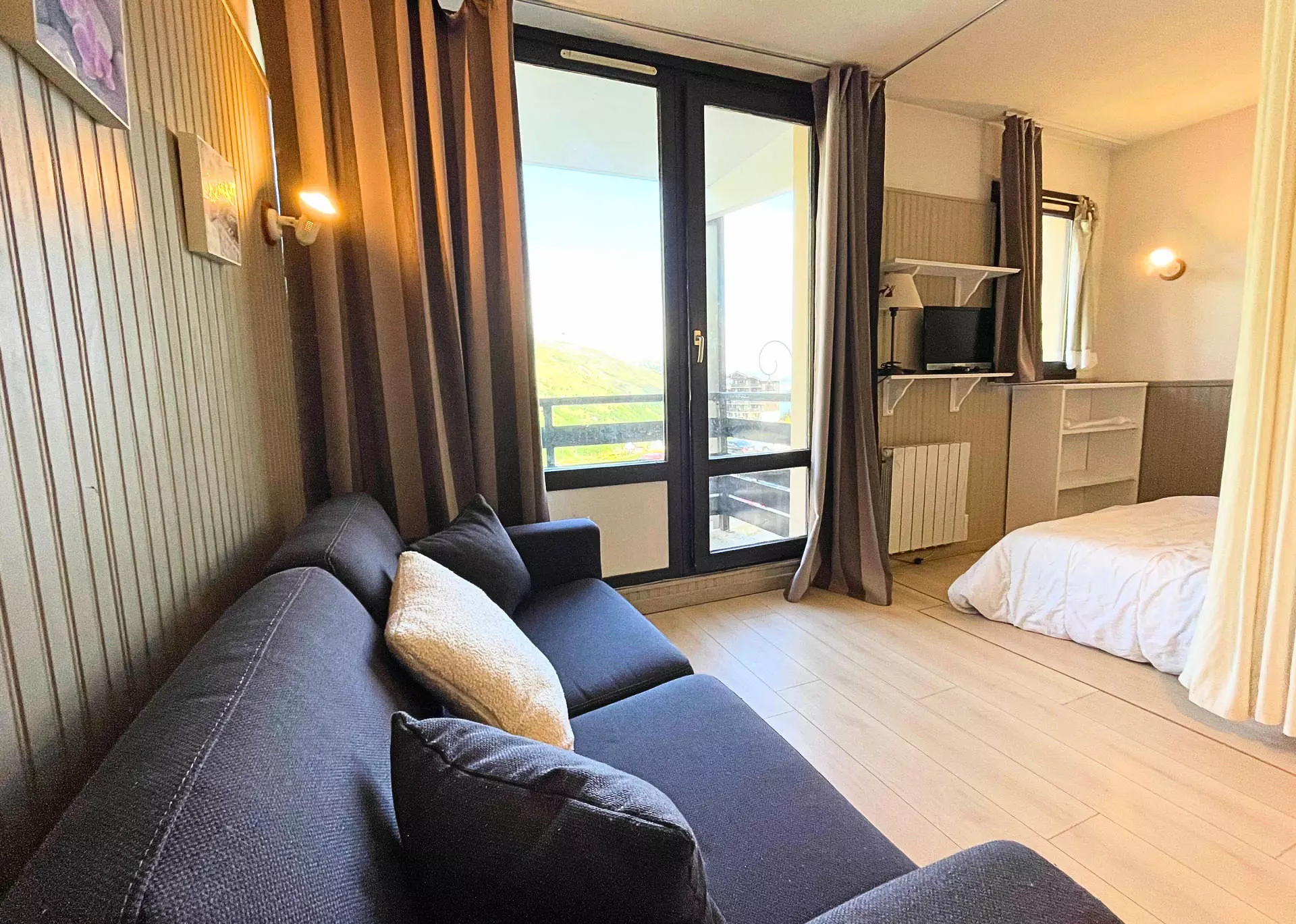 Residence Le Villaret (No. 205), divisible studio cabin for 4 people 26m², on the 2nd floor by elevator, west-facing balcony, mountain view