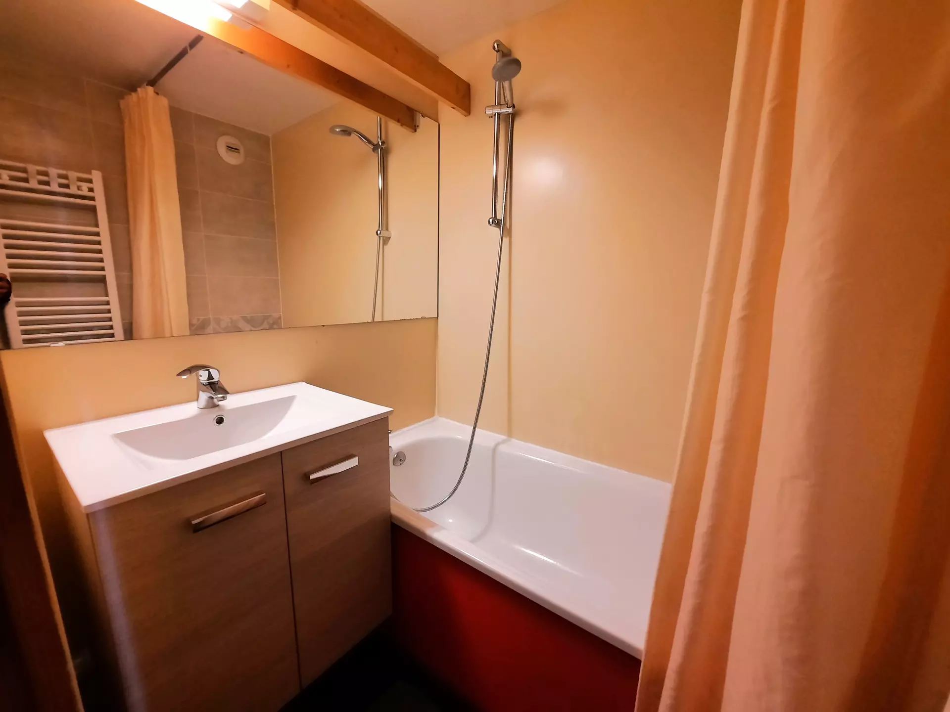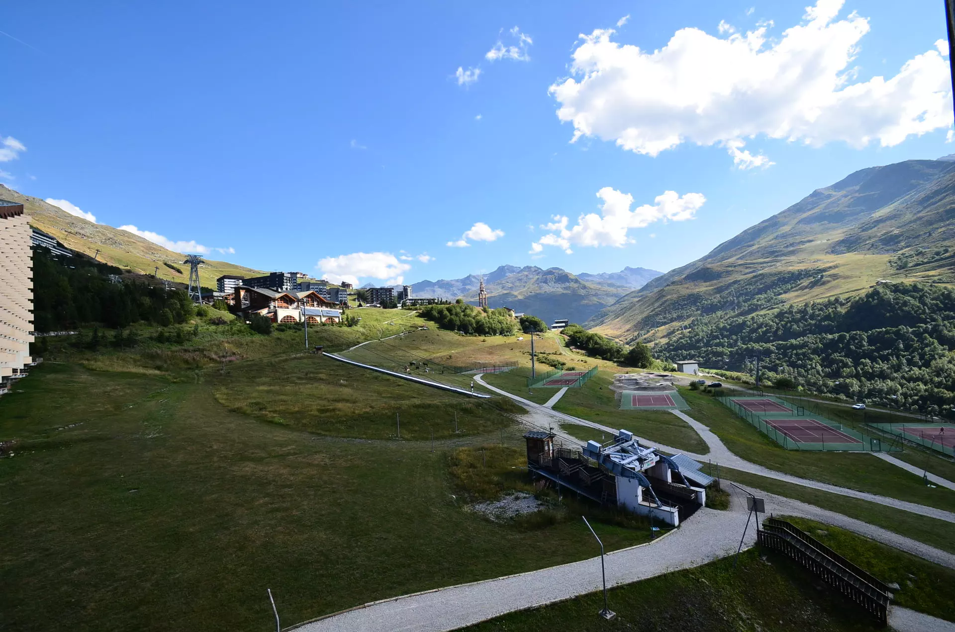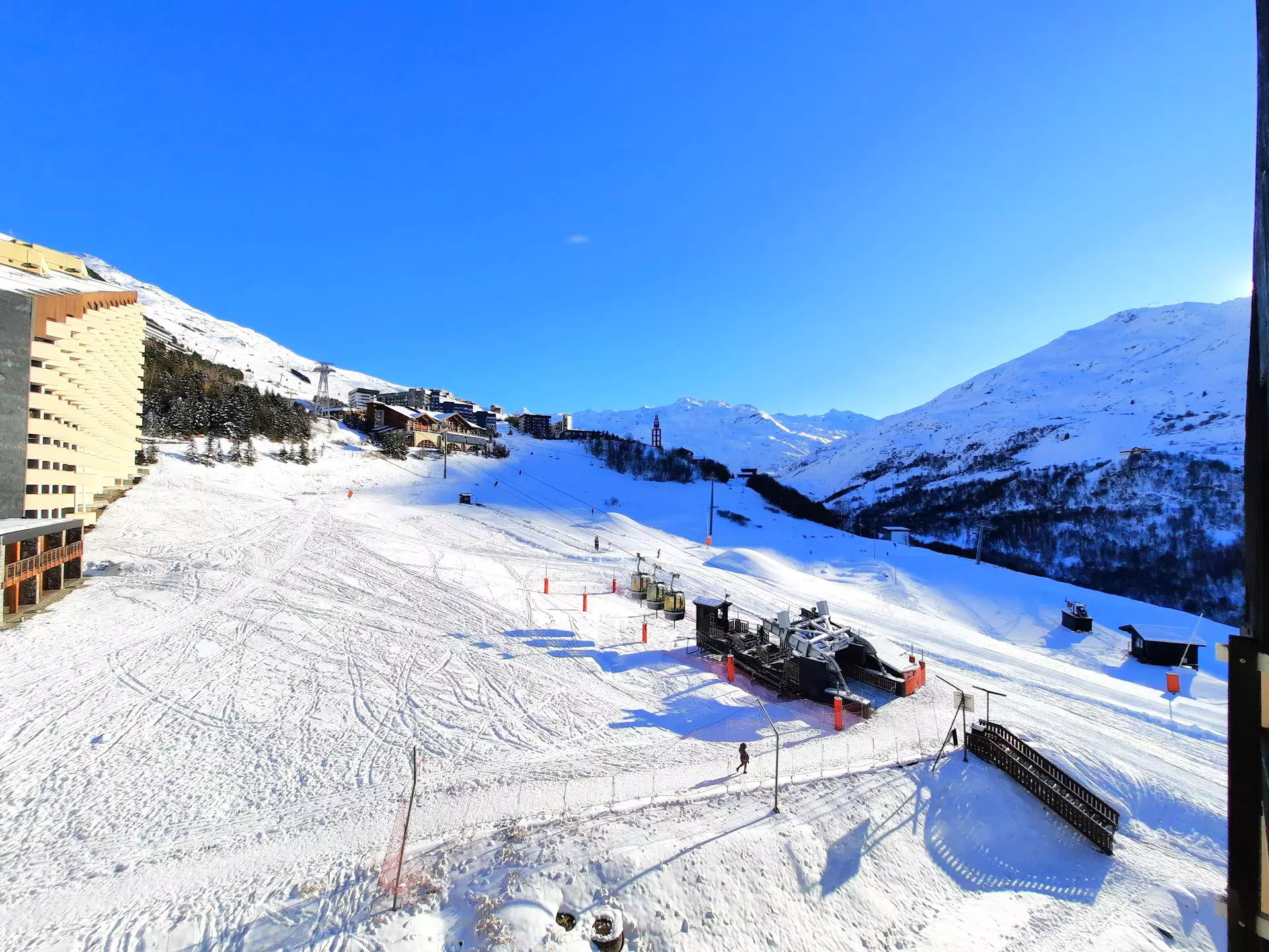 Residence Le Villaret (No. 712), studio cabin for 4 people, 27m², on the 7th floor by elevator (take the elevator to the 6th then the stairs between the 6th and 7th floors), east-facing balcony, view of the slopes. Connected to the Croisette district by cable car (free) until 11 p.m.