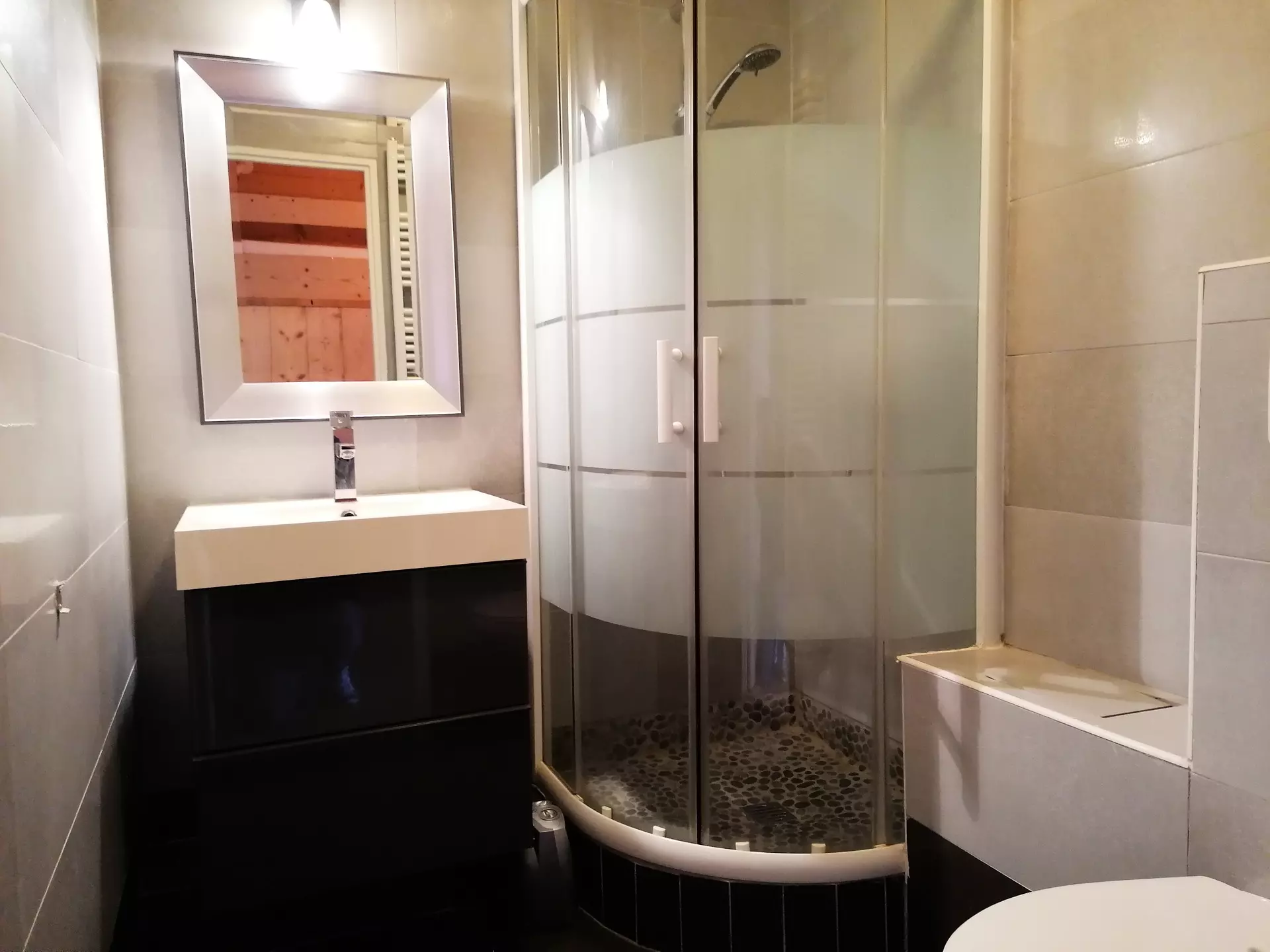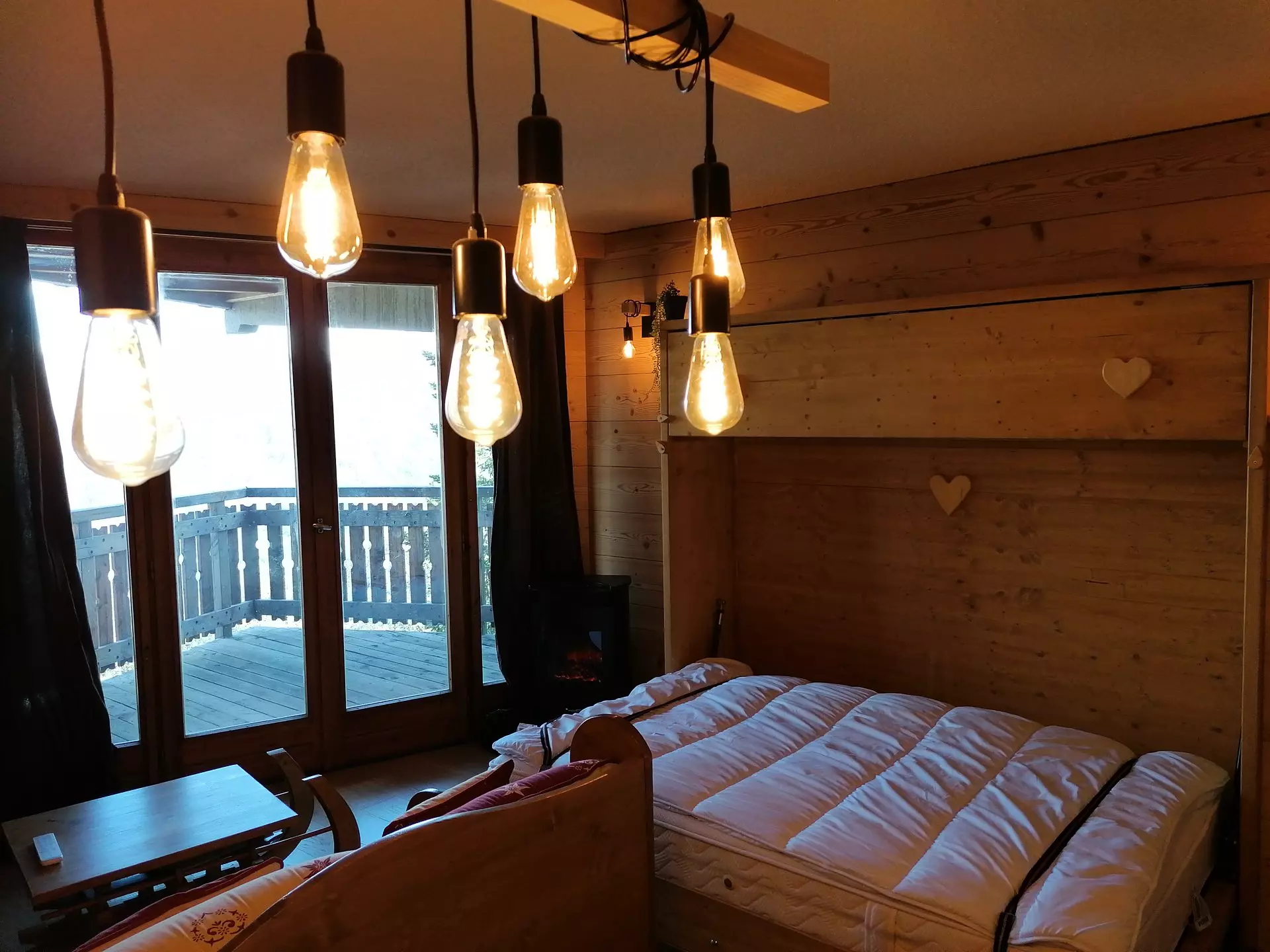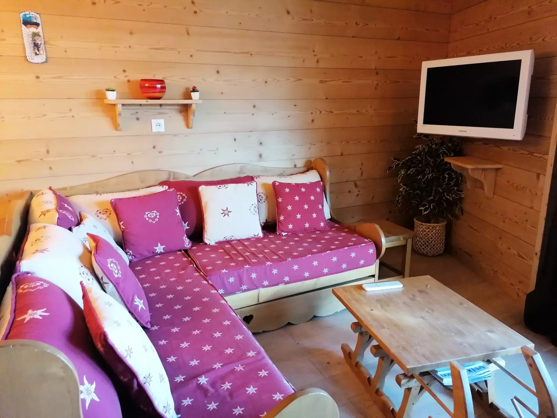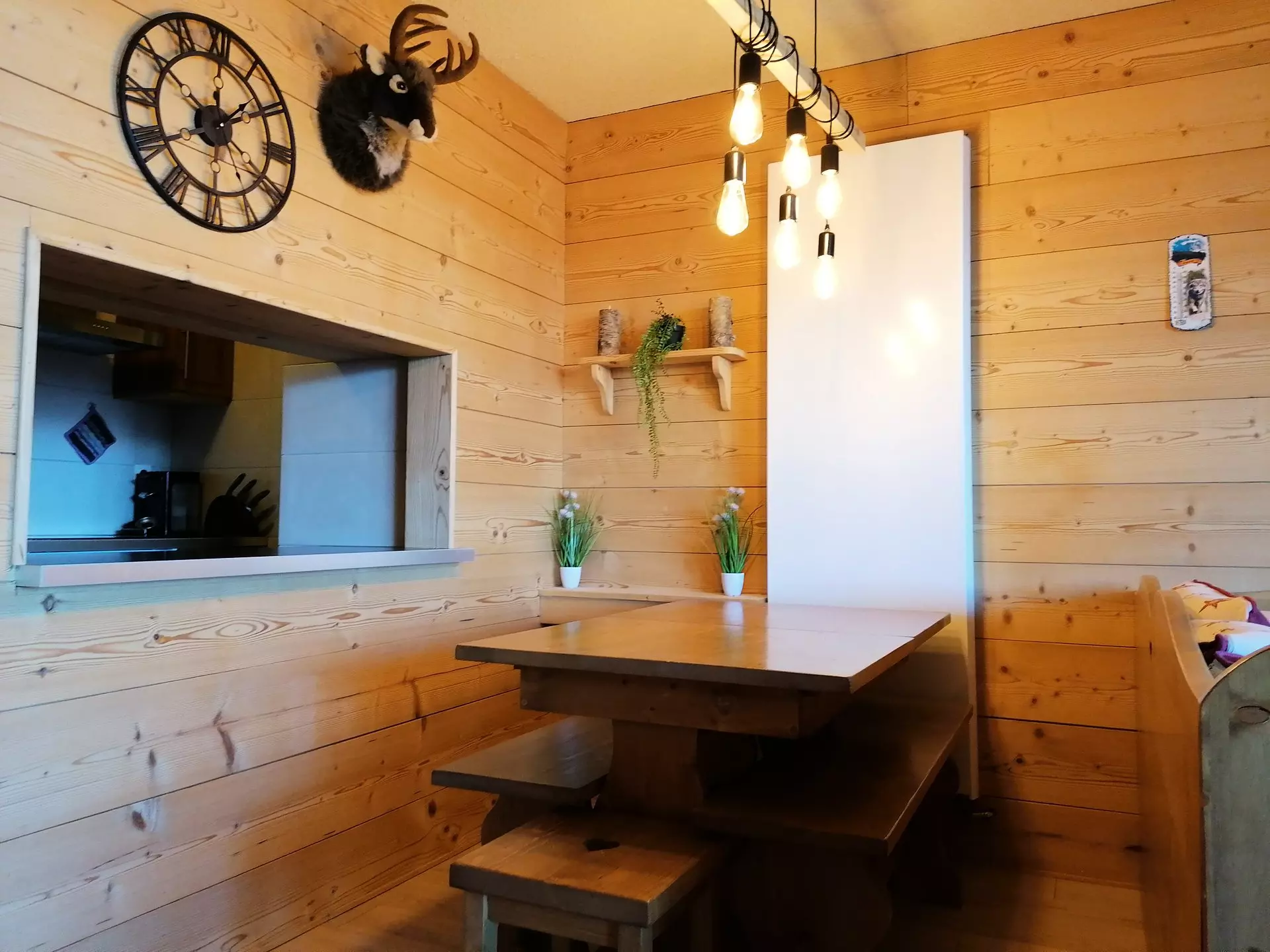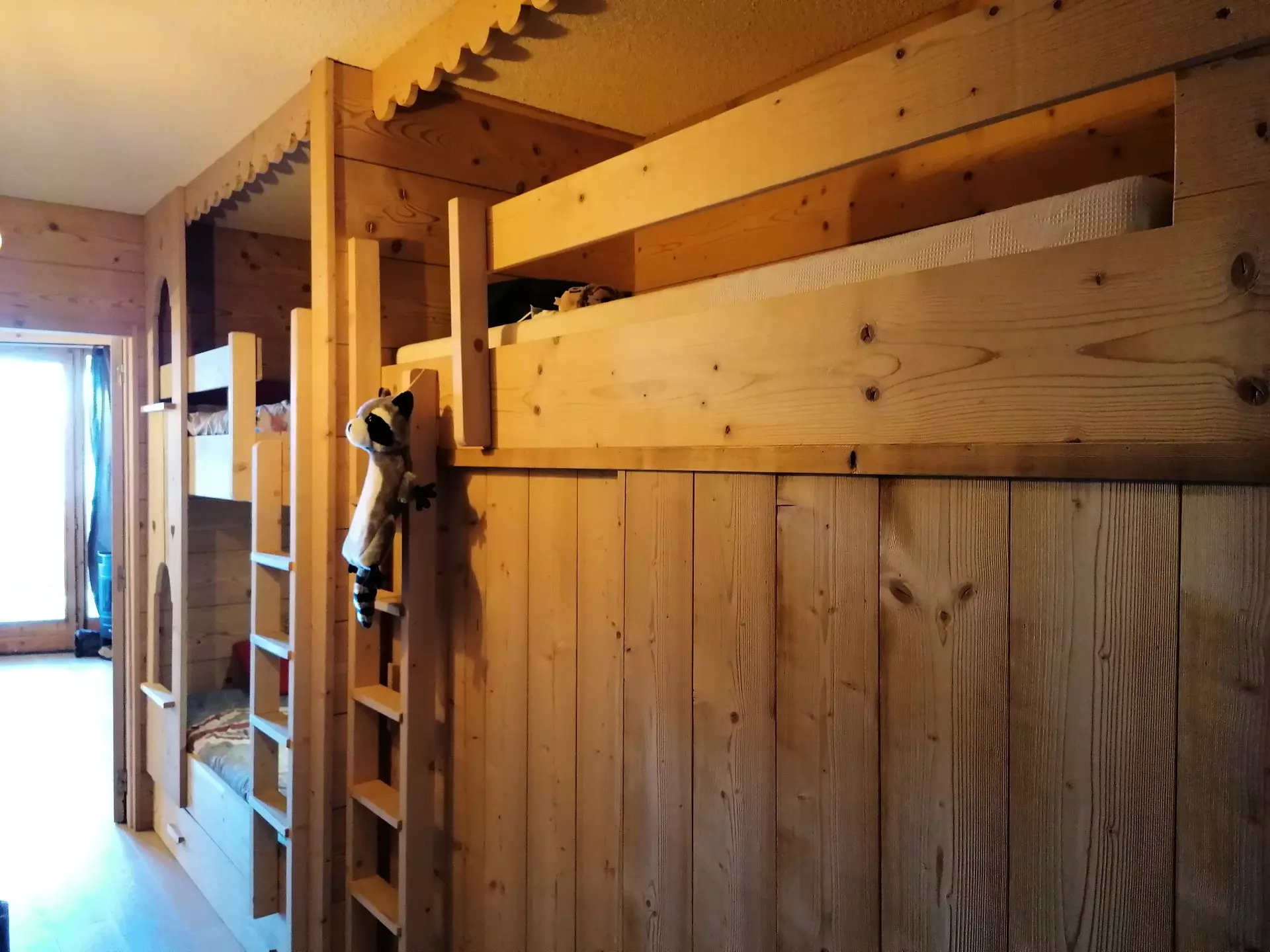 COMMENTS: Magnificent and spacious studio, completely renovated in wood, mountain style, niches for bunk beds, storage and custom-made fold-down bed. Located near the slopes and the shopping mall with a superb view of the valley and the mountains from its large balcony. Individual ski locker.