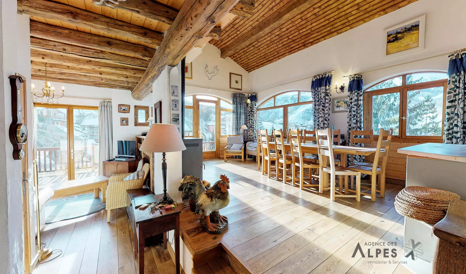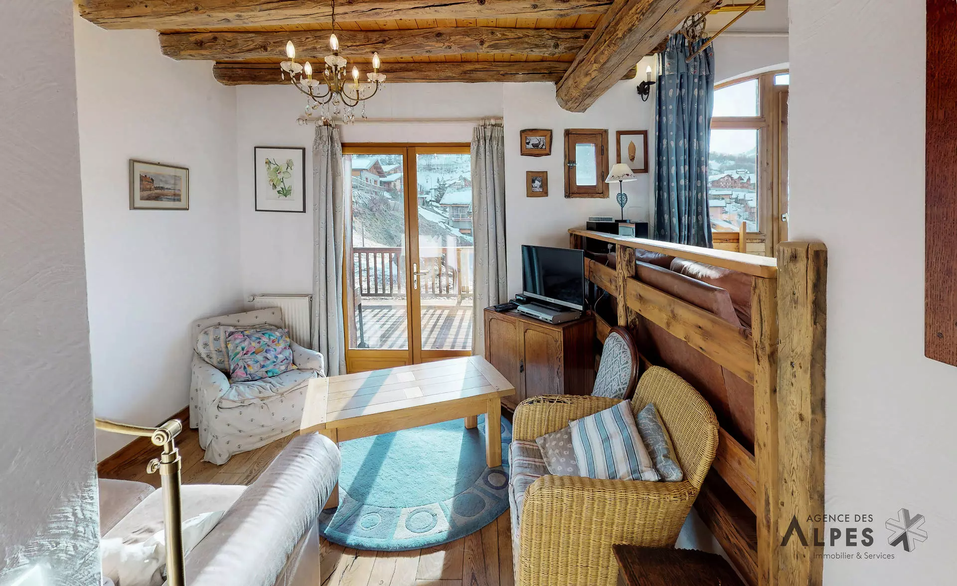 Lounge and dining area: armchairs, coffee table, television, DVD player, HiFi system, wood-burning stove (1 bag of wood provided), terrace access with an unobstructed view of the mountain and the village
