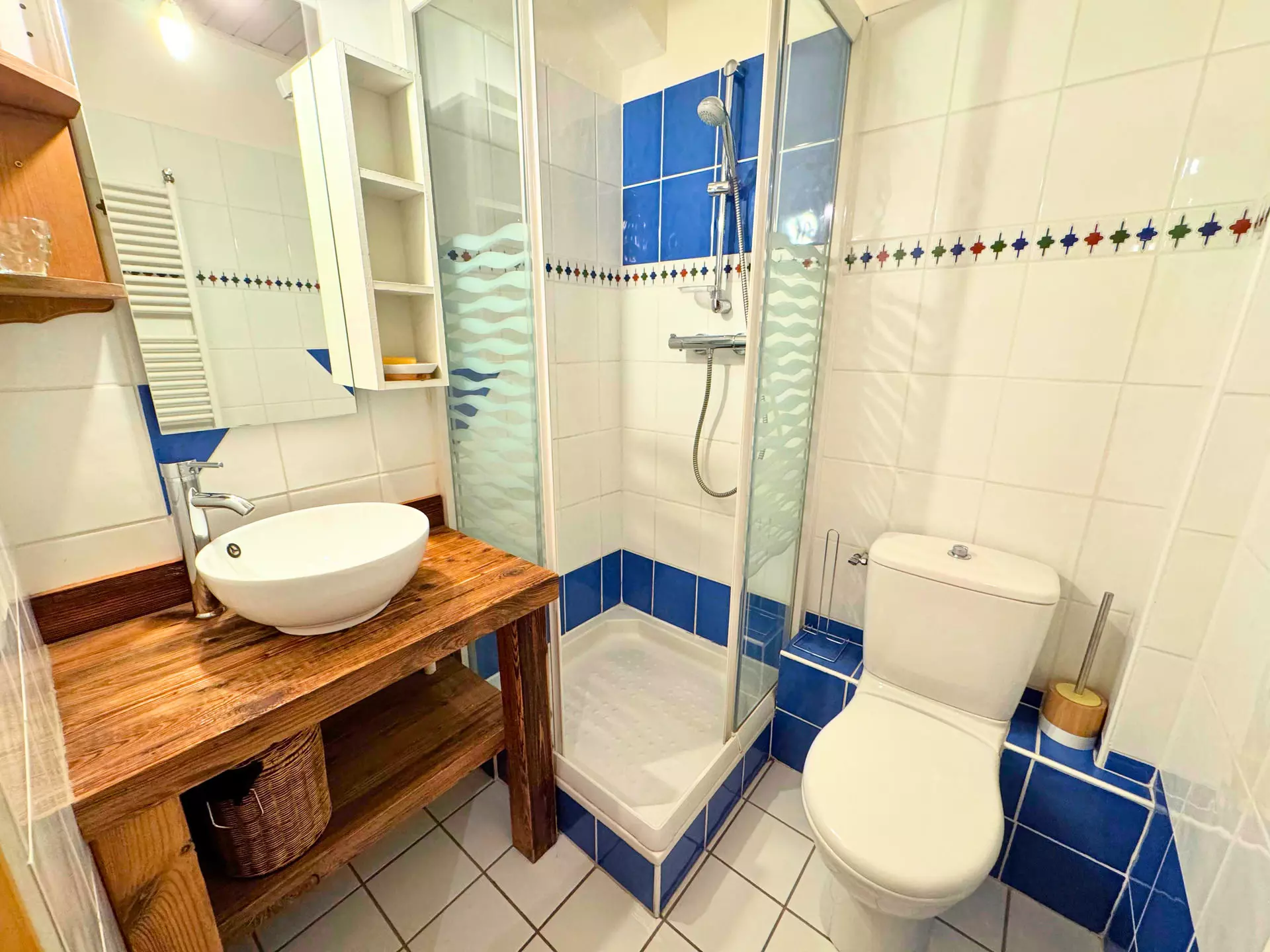 "Renardeau" room: single beds (2x90 cm), chest of drawers, adjoining bathroom (sink, shower, towel dryer),