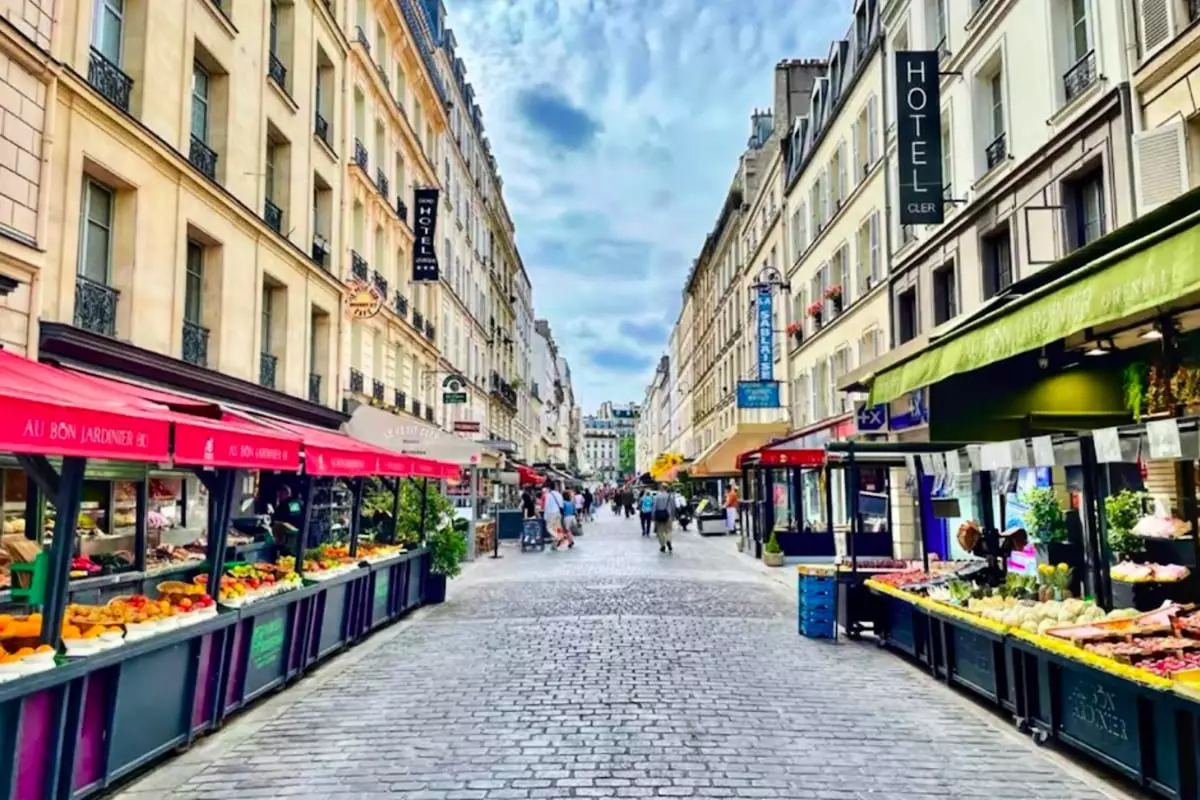 - and its location: on a lively street with restaurants and cafes; between the Eiffel Tower, the Champ de Mars, the Invalides and the Seine; close to the shops on Rue Cler and the banks of the Seine.