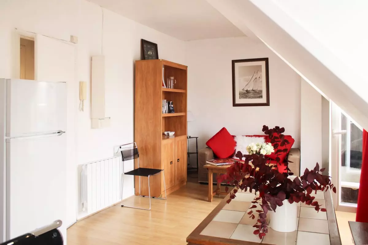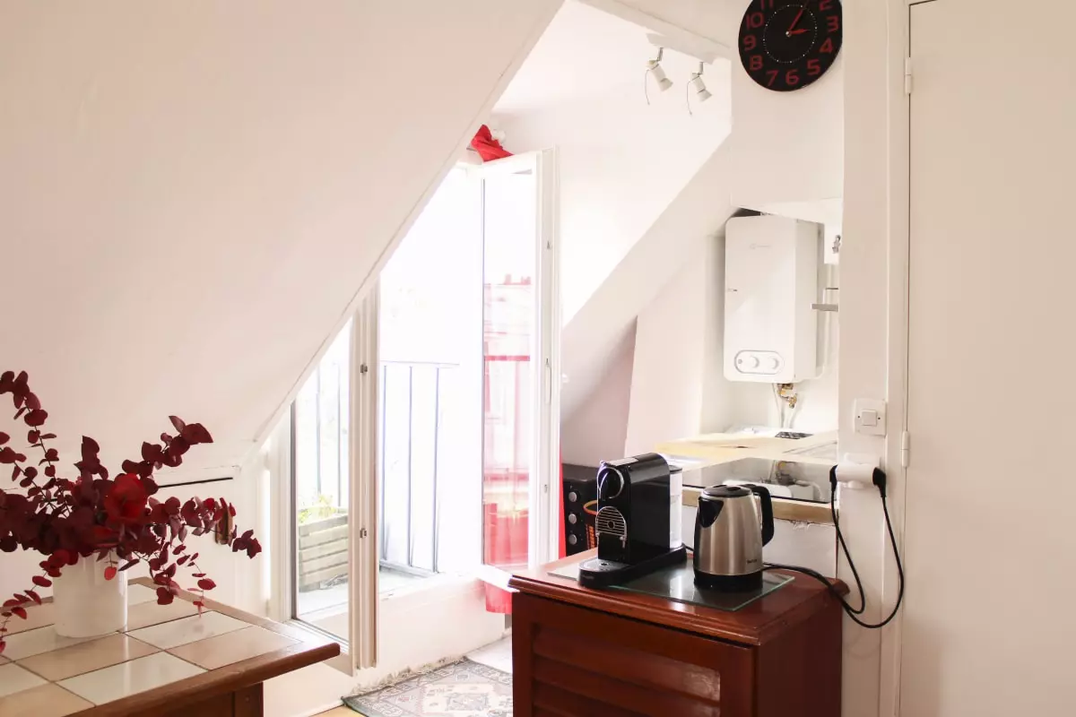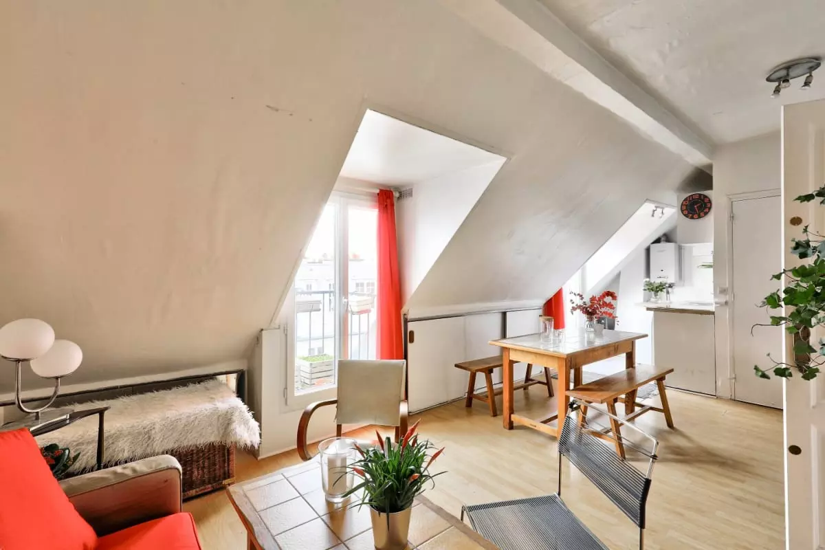 This friendly and warm apartment under the roofs of Paris is located on the 6th floor without elevator, it includes: