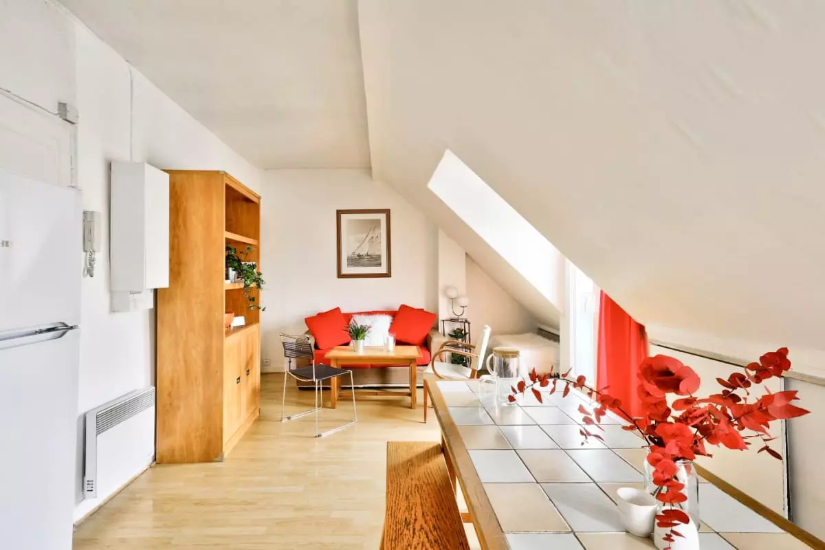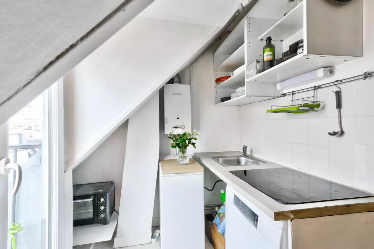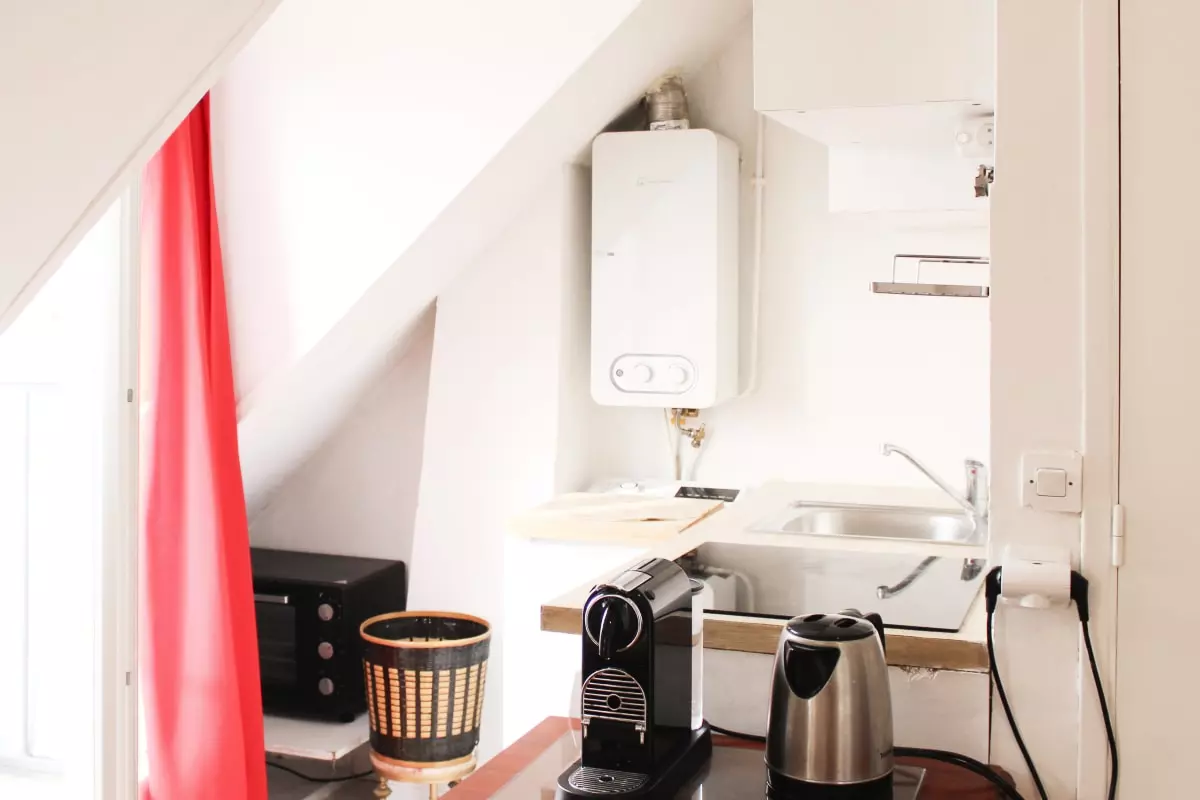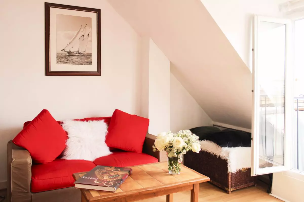 This friendly and warm apartment under the roofs of Paris is located on the 6th floor without elevator, it includes: