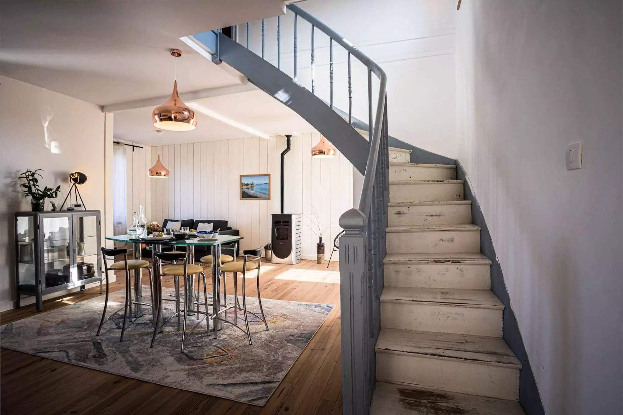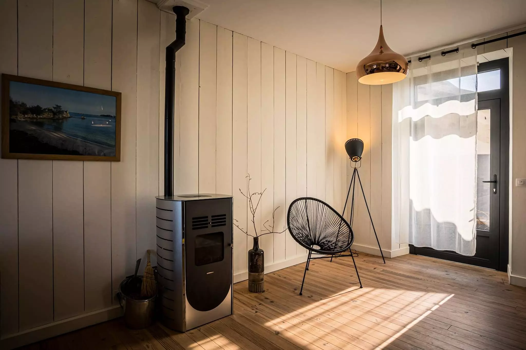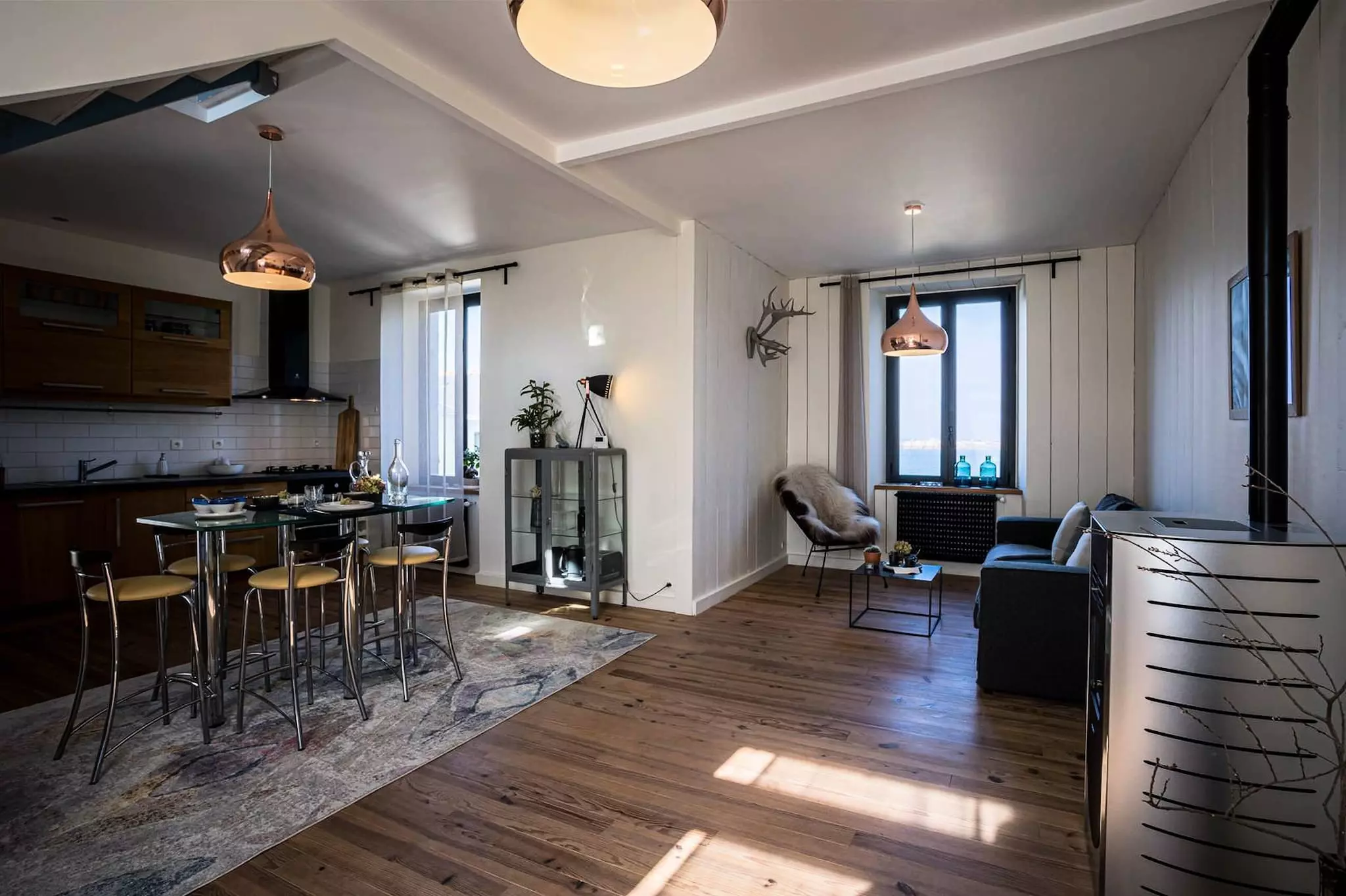 - Spacious living room: cozy lounge with wood stove, ideal for winter evenings.