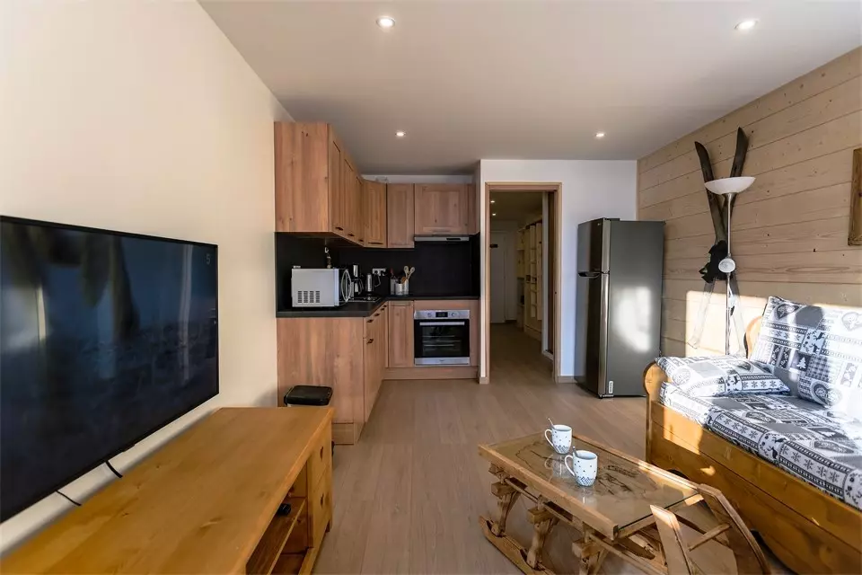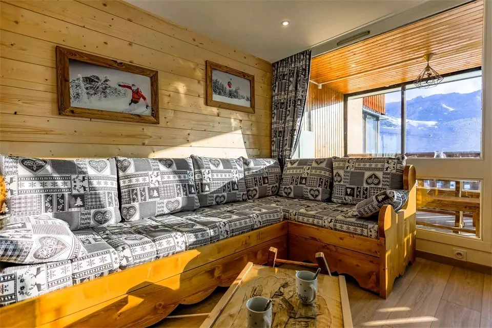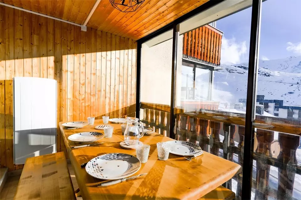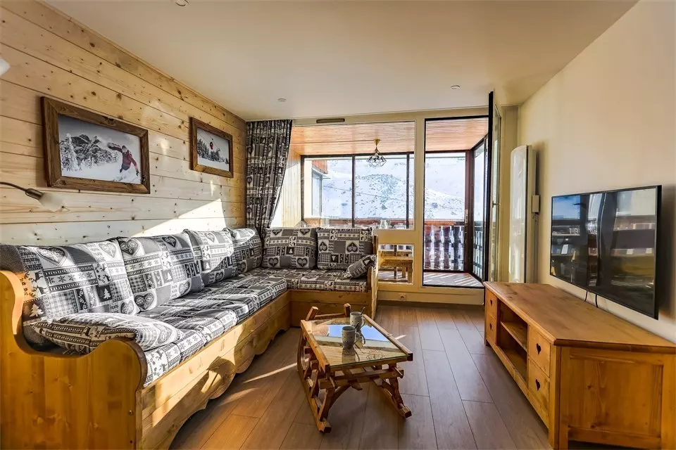 Fully renovated apartment in autumn 2019, mountain style with woodwork, 34 m² + 7 m² veranda for 6 people on the 4th floor with elevator. South-facing view of Val Thorens.