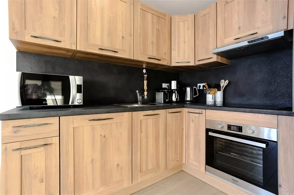 - Fully equipped open kitchen for 6 people with induction hob, dishwasher, microwave, oven, refrigerator, classic coffee maker, Nespresso, toaster and kettle.