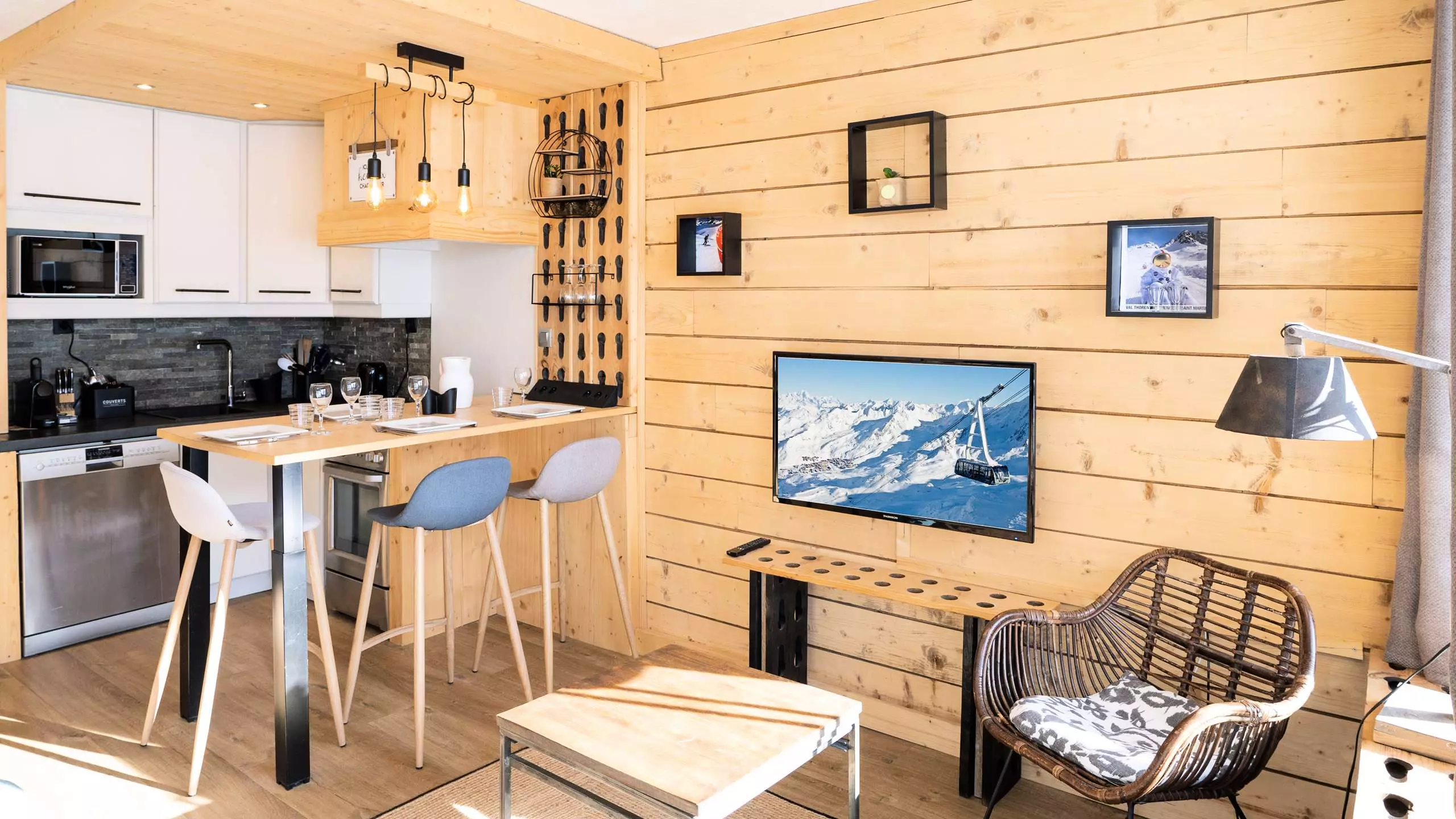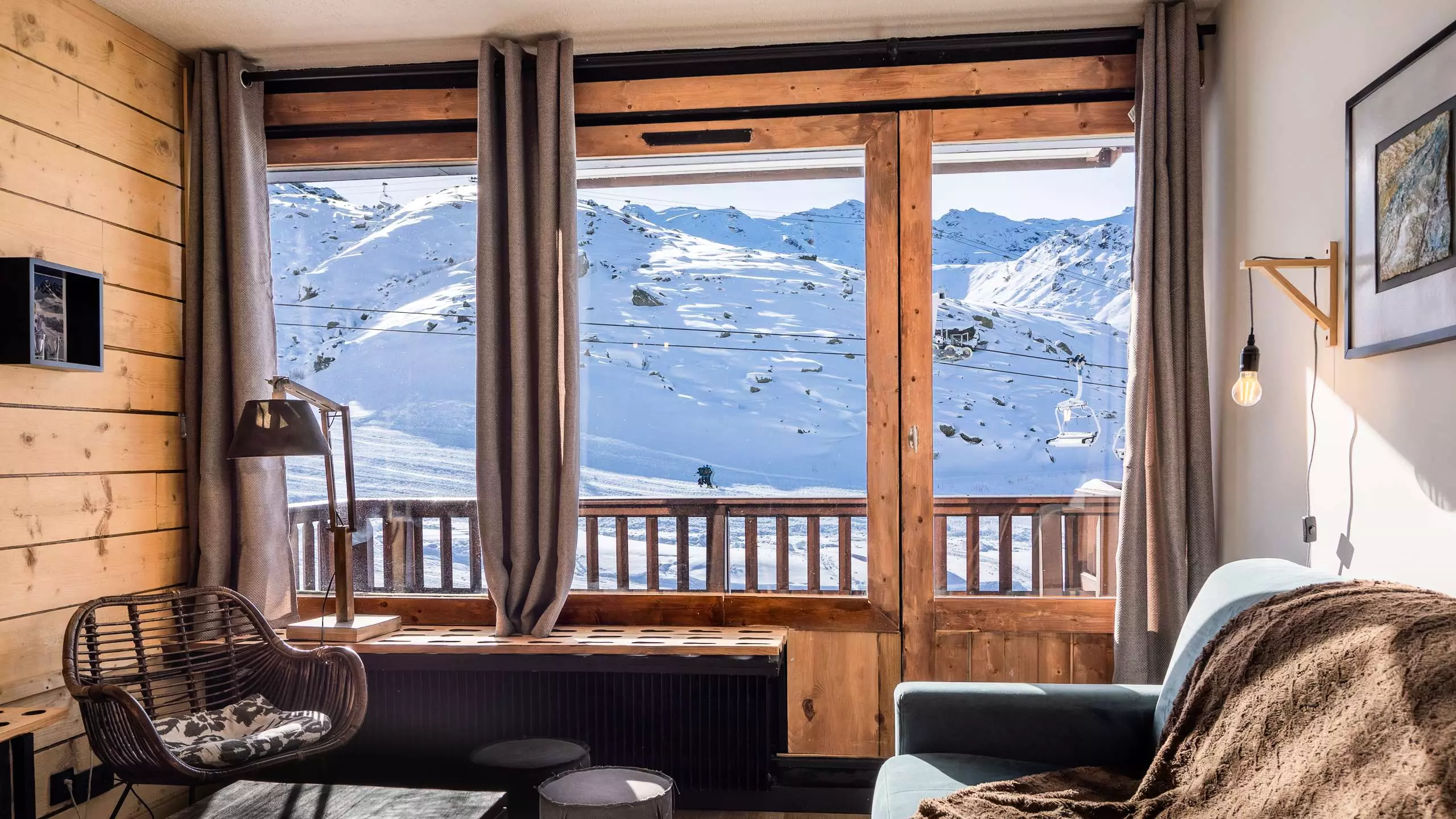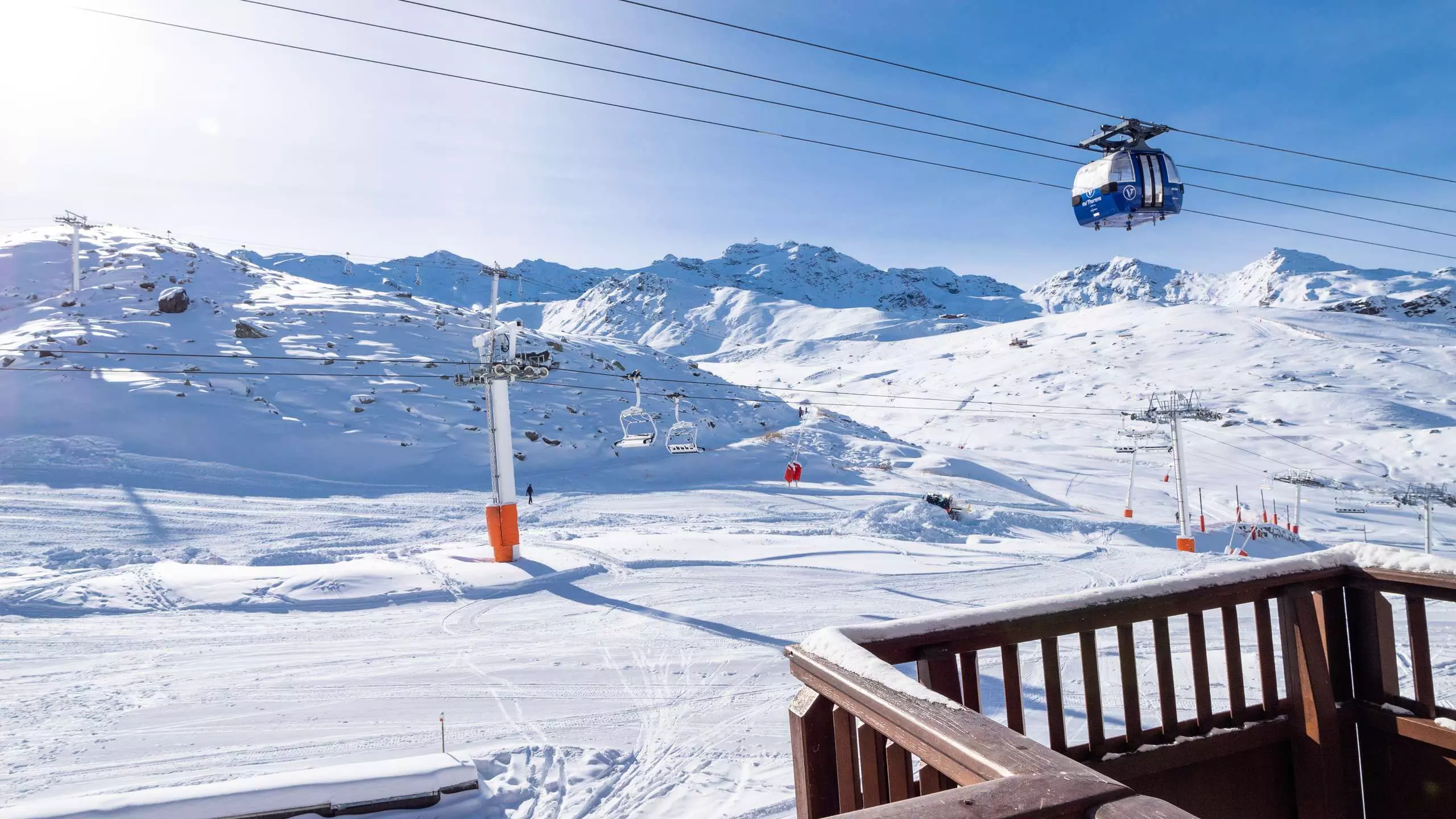The main room has a magnificent south-facing view directly overlooking the slopes and snow-capped peaks of Val Thorens.