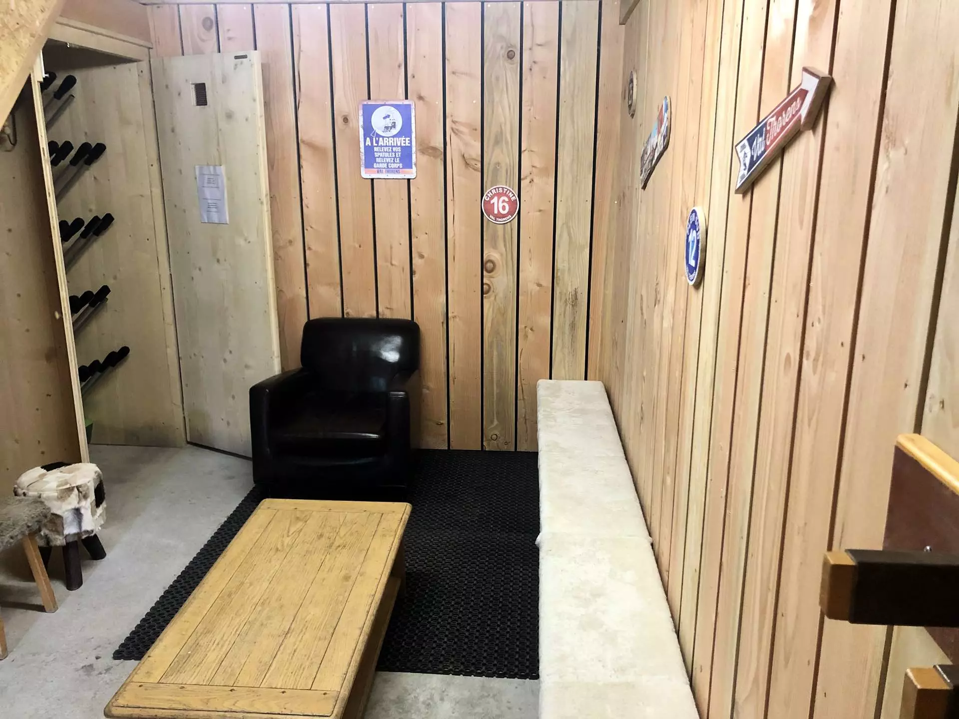- A closed garage for parking a car and where the ski room with boot warmers (15 pairs) is located.