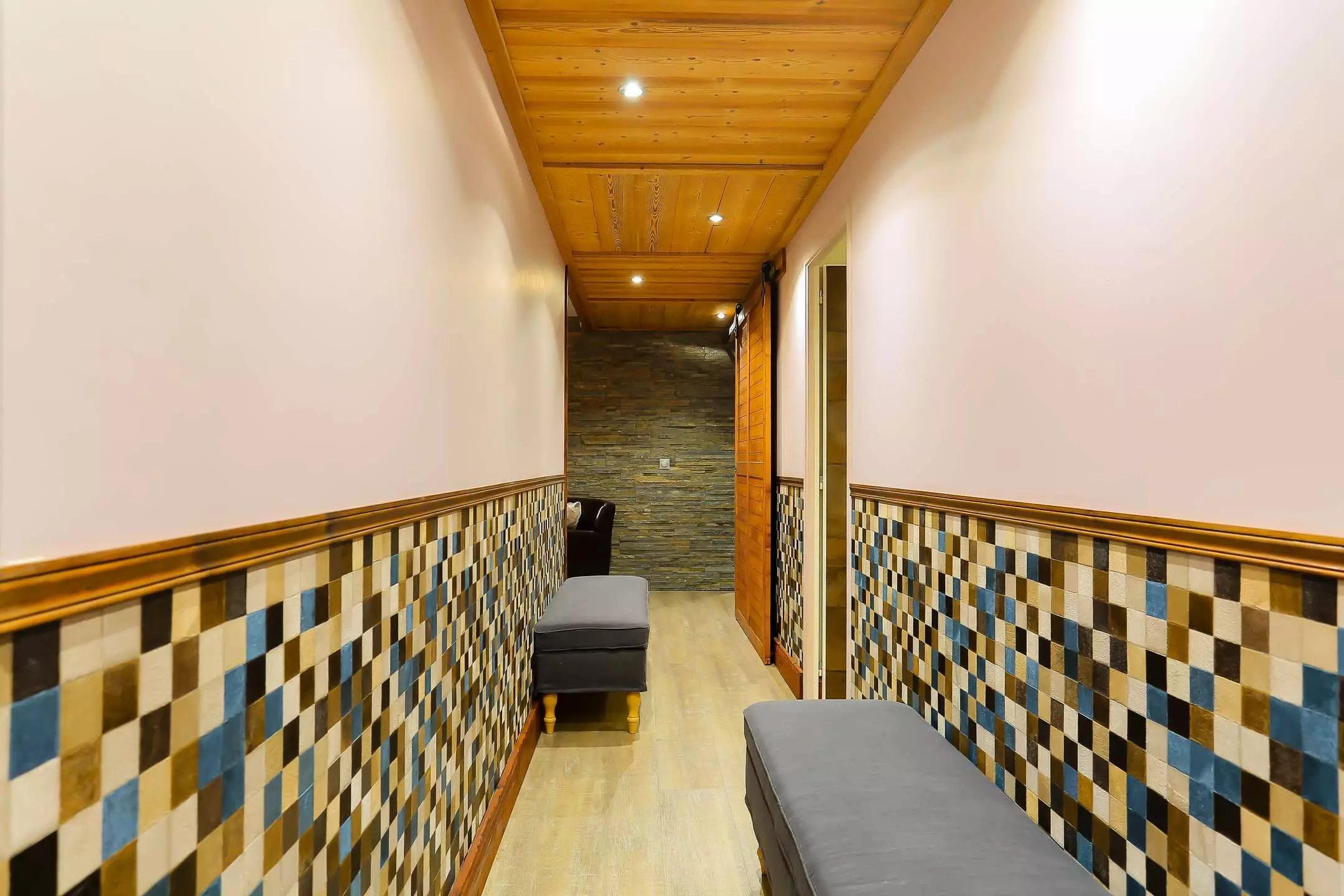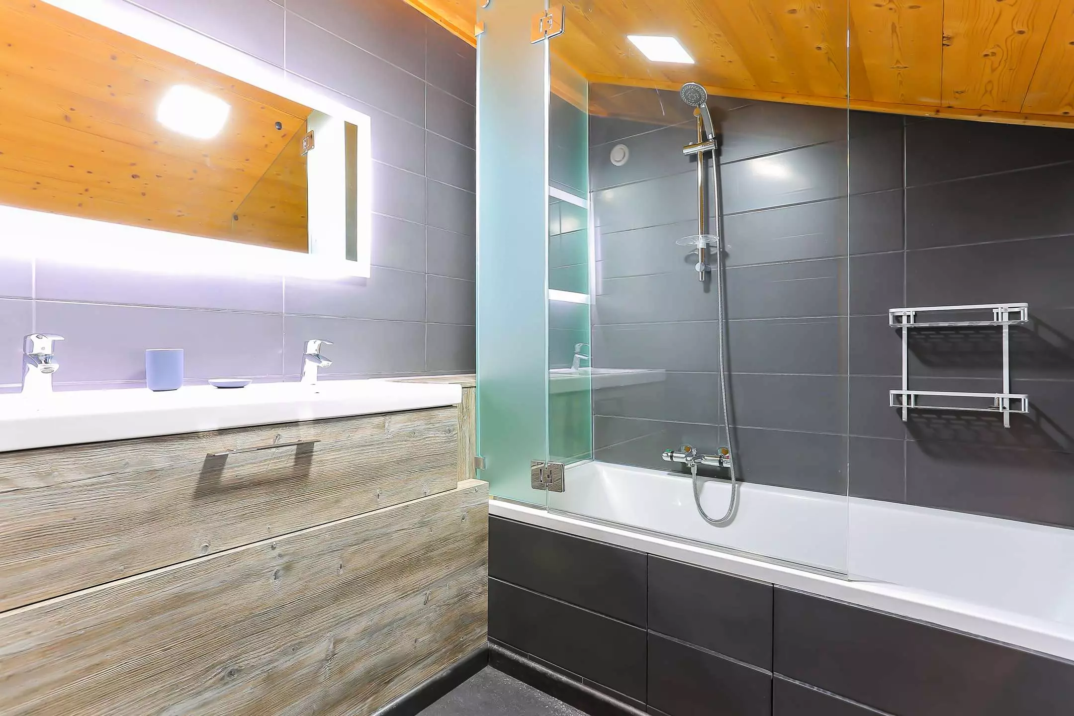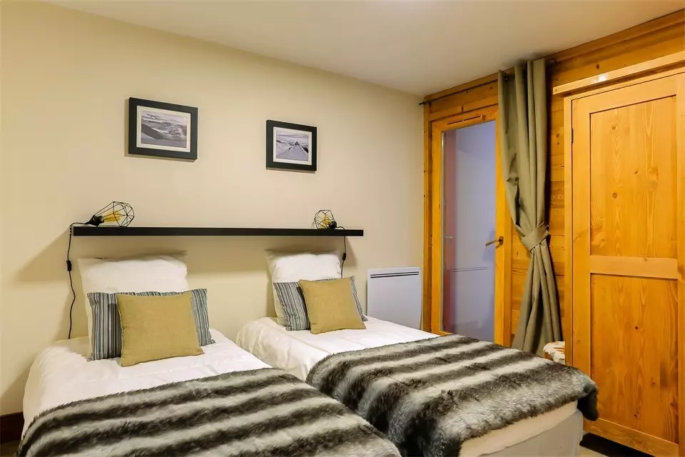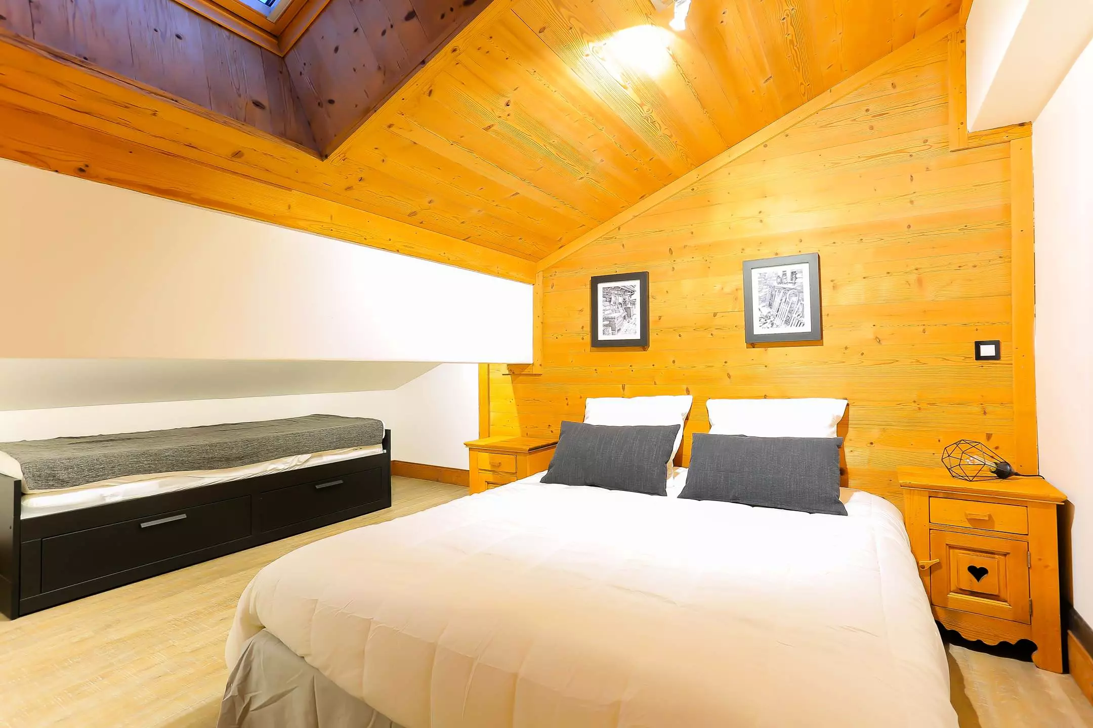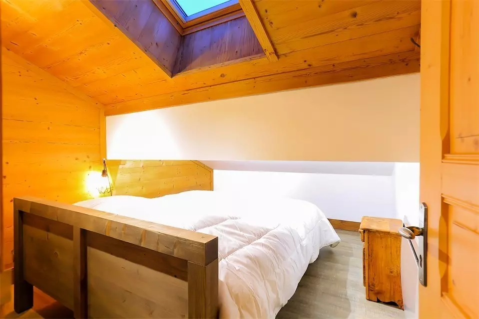 - Upstairs, 2 family bedrooms with a 160 cm double bed and an 80 cm single bed, and a sleeping area under the slope (less than 1.50 m) with 2 80 cm single beds. This last bedroom is ideal for children.