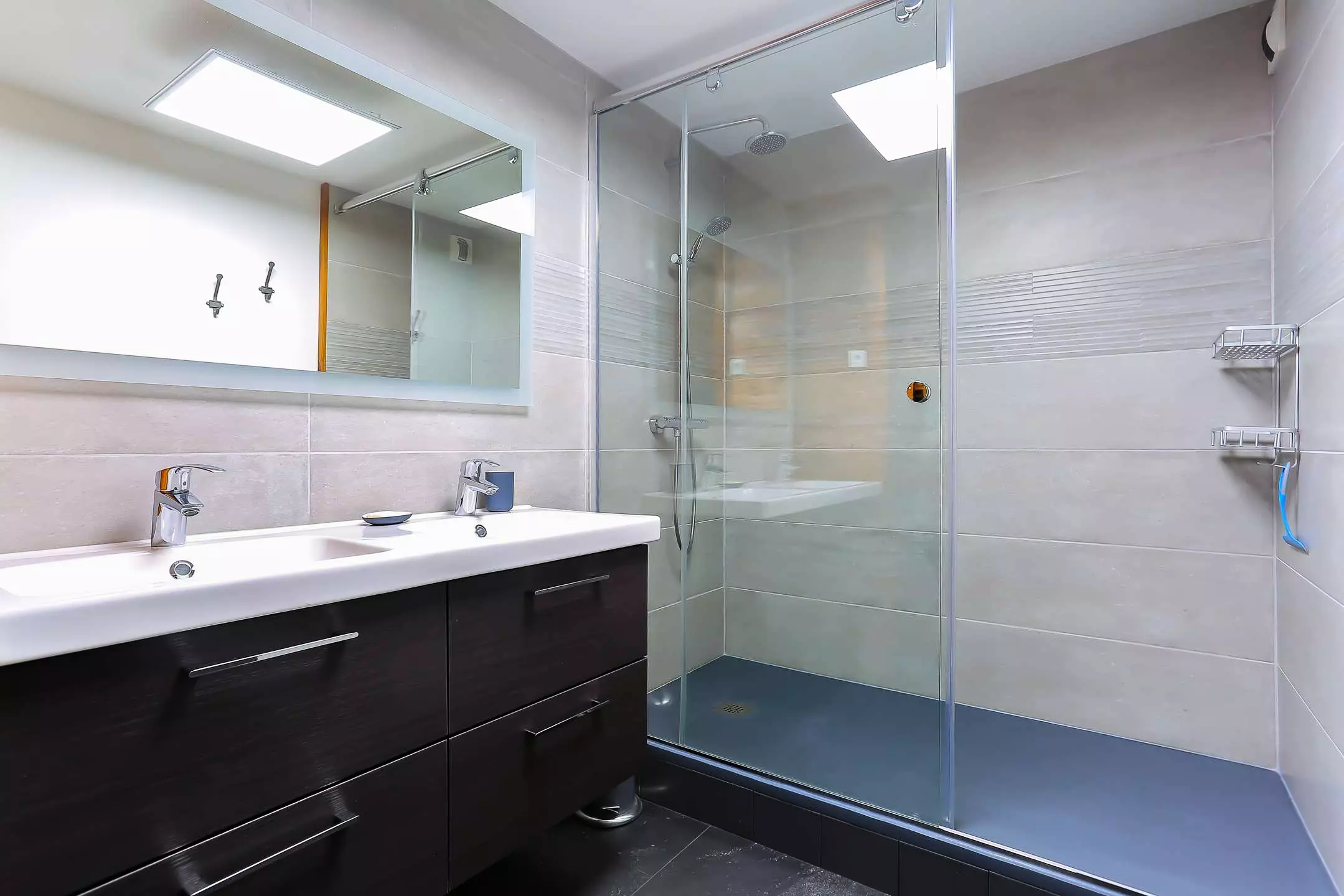- Two bathrooms with double sinks: one with a large shower on the ground floor and one with a bathtub upstairs