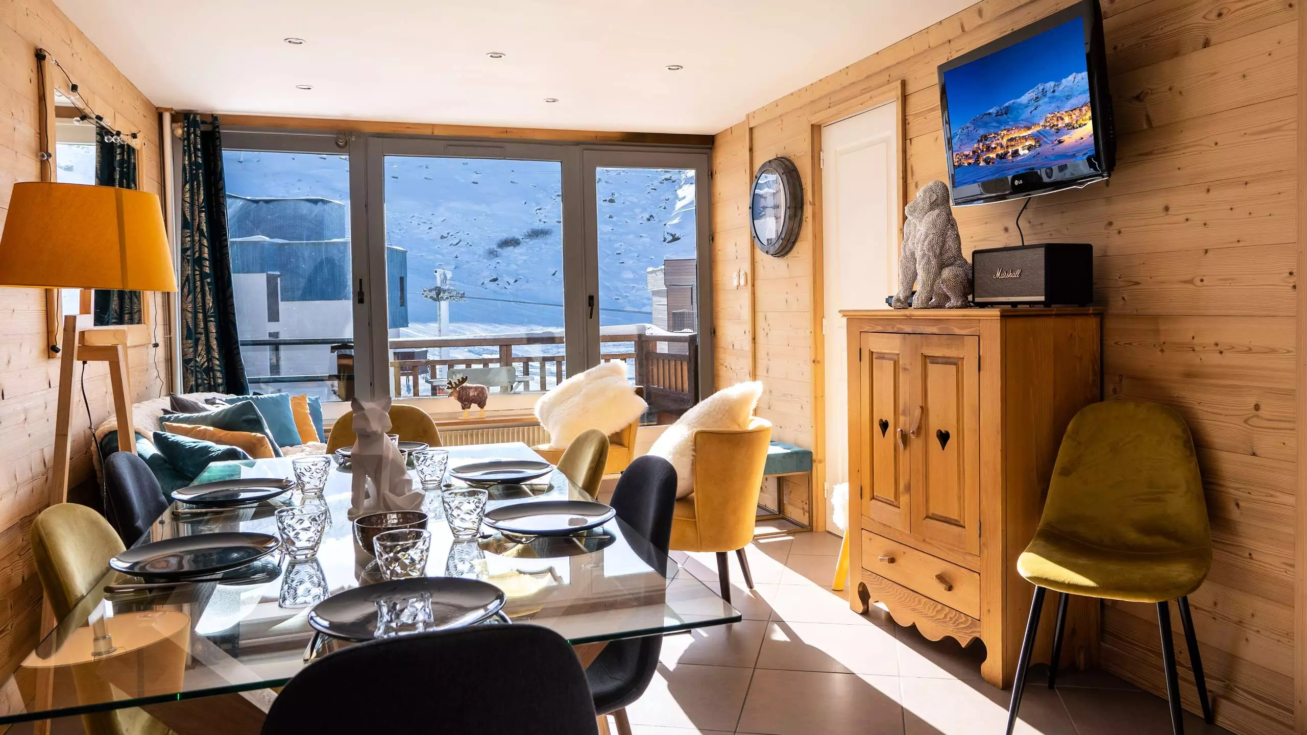 Located in the Hauts de Chavière residence, on the slalom square, in the upper part of Val Thorens. A quiet area just 50 meters from the slopes and close to shops and restaurants.