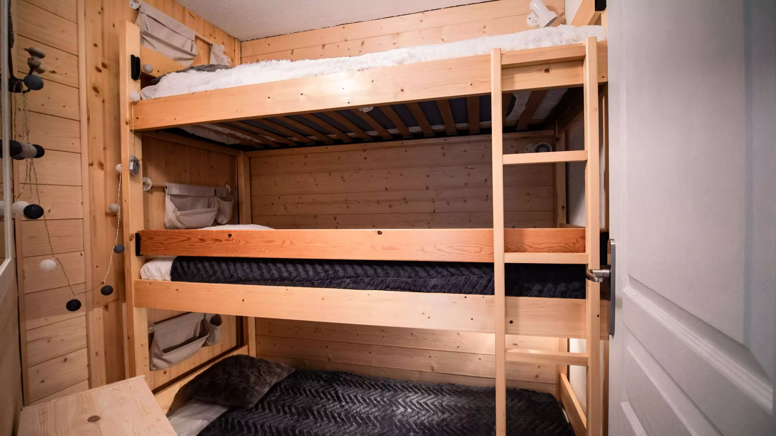 - Two bedrooms each with a double bed (140 cm), closet and TV and a cabin with bunk beds (90 cm). All beds are equipped with duvets and pillows.