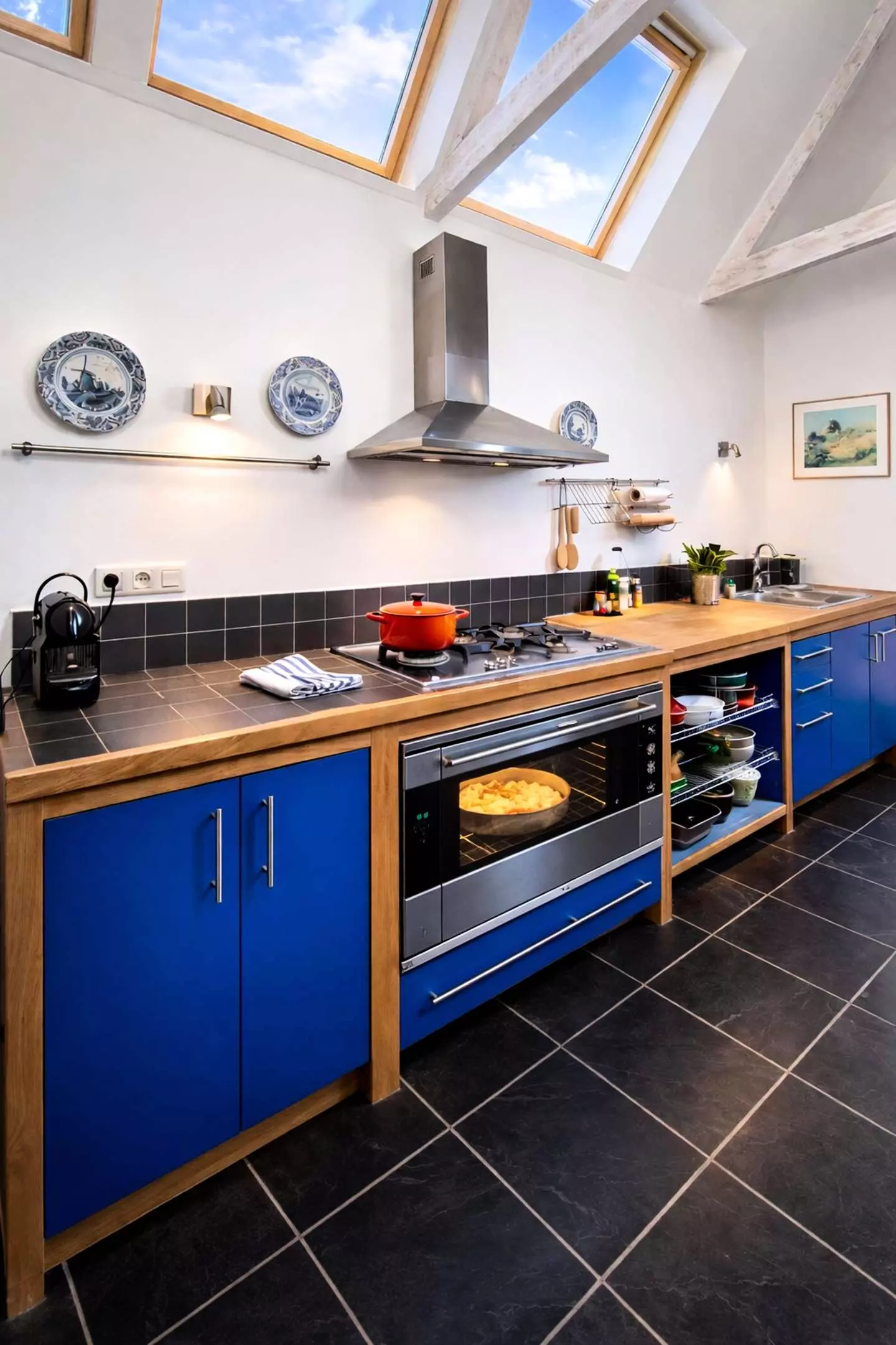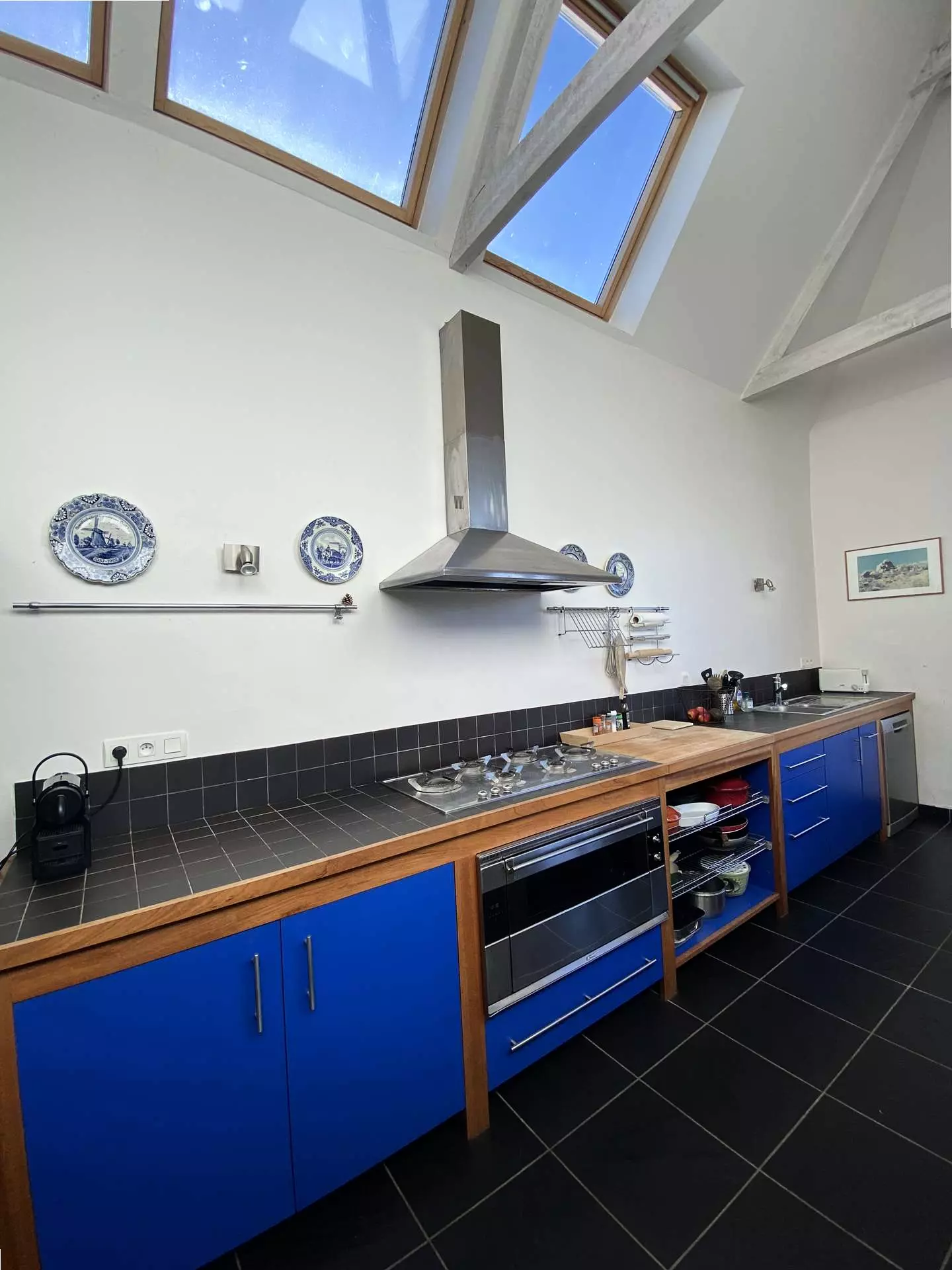 Sofa, television, Wi-Fi connection (internet box), table, benches and chairs for dining, fridge-freezer combination, gas hob, electric oven, microwave, dishwasher, washing machine, coffee maker, Nespresso machine, toaster, kettle. 2 beds 160x200 cm, 2 twin beds 90x200 cm and 3 single beds, duvets and pillows, garden furniture.