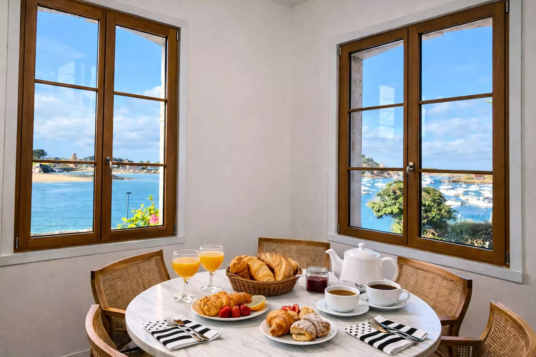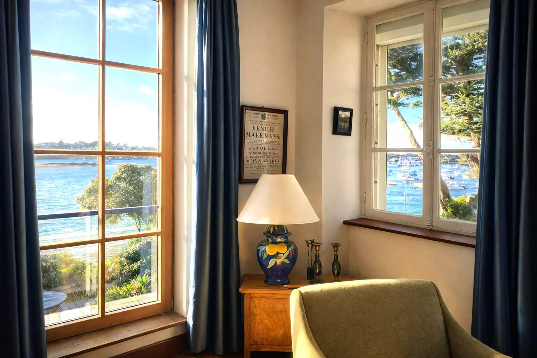 Koskéol, a beautiful villa with a sea view in the port of Ploumanac'h on the Pink Granite Coast. Access to the house is via a small granite staircase. Its 209 m² interior, spread over 3 levels, can accommodate up to 9 people. A large living room with a sea view opens onto the kitchen, two master bedrooms, each with a private bathroom, and four bedrooms and a bathroom upstairs. An enclosed garden and two terraces, one of which faces the sea. Free parking is available in front of the house or nearby. This is a non-smoking property, with beds made and linen provided. Final cleaning is included. Pets are welcome under certain conditions.