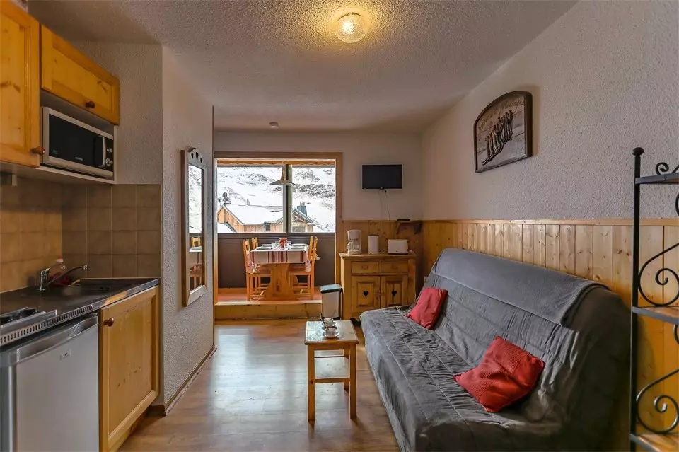 Located in the Cimes de Caron residence, at the entrance to Val Thorens and just across the street from a supermarket. The residence is close to shops, restaurants, and the sports center, and just steps from the ski slopes.