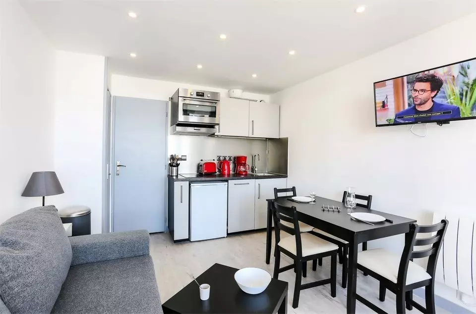 Fully renovated studio (23 m²) for 2 people, summer 2019, on the 3rd floor with elevator. South-facing view with balcony.