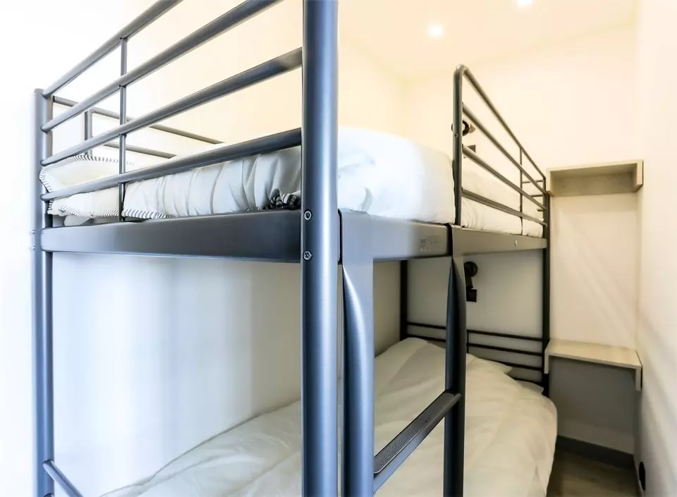 - A cabin with bunk beds. Equipped with duvets.