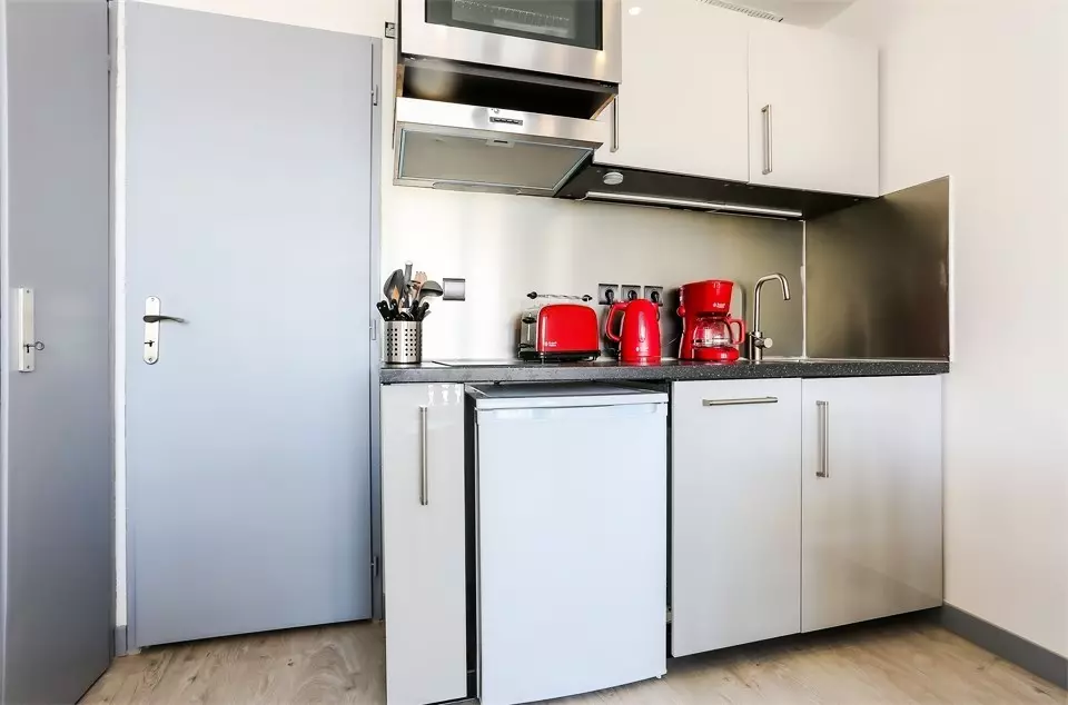 - Fully equipped kitchenette for 2 people with ceramic hob, dishwasher, oven, refrigerator, coffee maker, toaster and kettle.