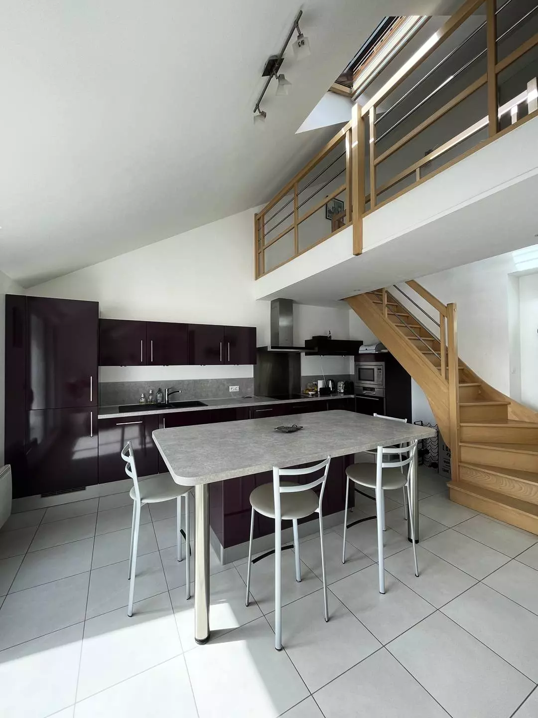 -A fully equipped and fitted kitchen opening onto the living room with balcony including an induction hob, an oven, an extractor hood, a microwave, a kettle, a toaster, a high table for 6 people, 2 coffee makers, a fridge-freezer, a dishwasher, food processors, a pressure cooker, a washing machine, a tumble dryer;