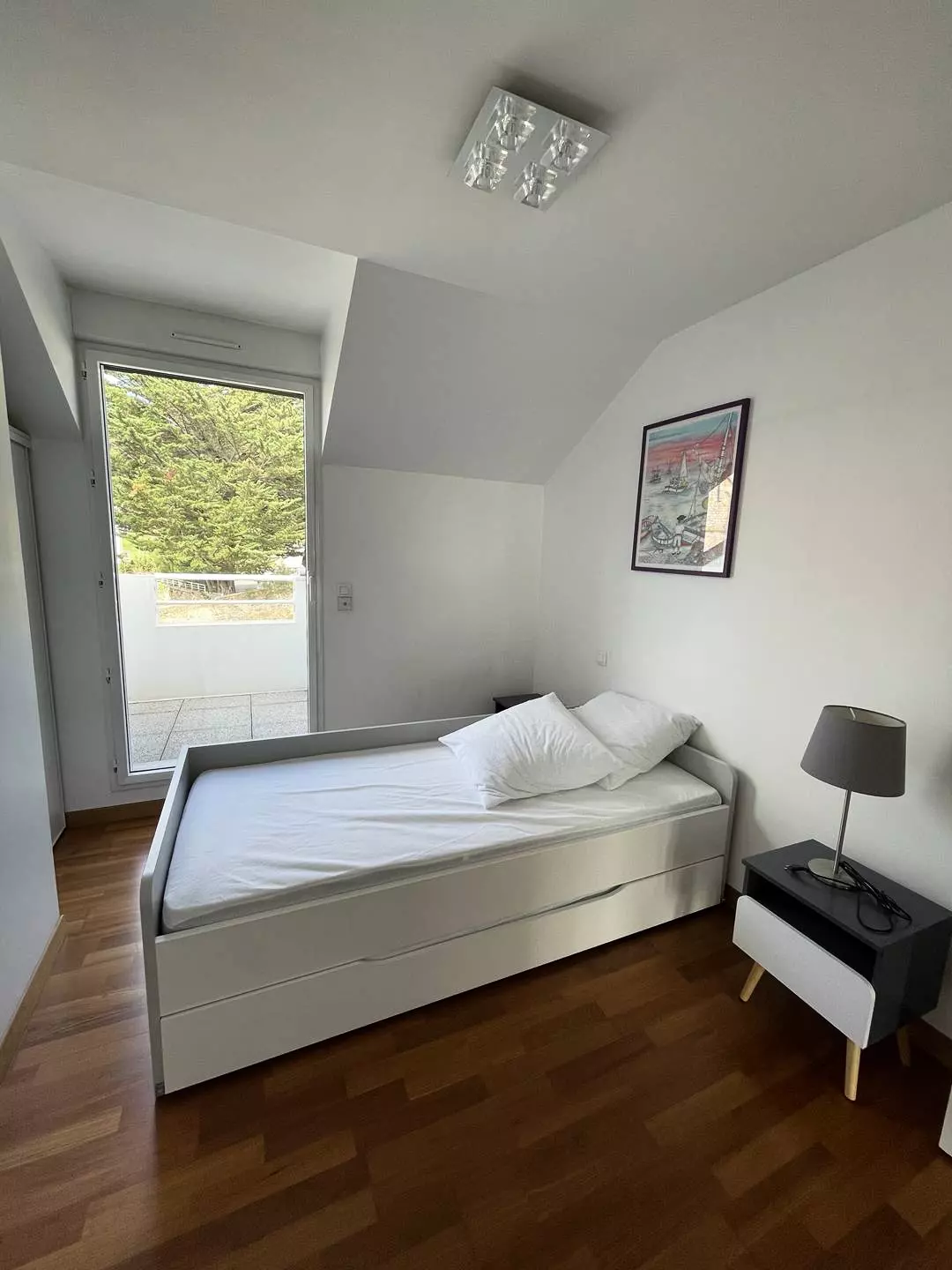 -A bedroom with balcony including 1 single bed and 1 trundle bed (90*195cm), a wardrobe;