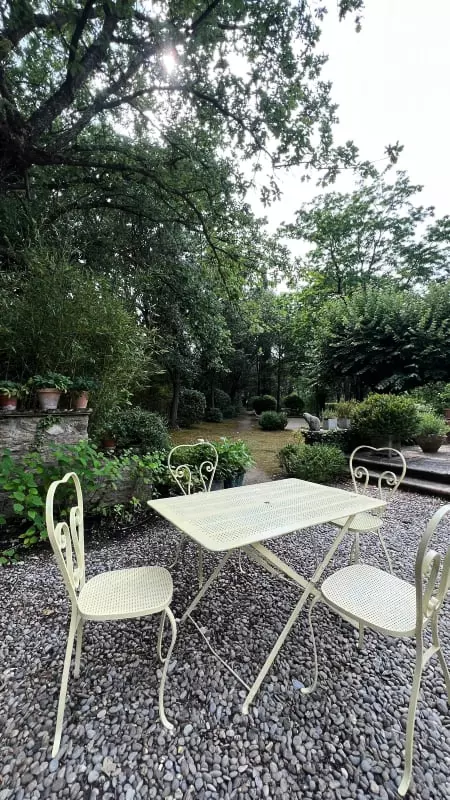 Large 3,000 m² wooded garden, perfect for relaxing or organizing outdoor meals.