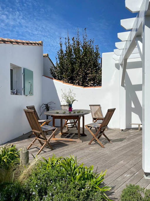 Material of Garden : 2 garden Tables - 4 Chairs white - 4 sun Loungers + bbq