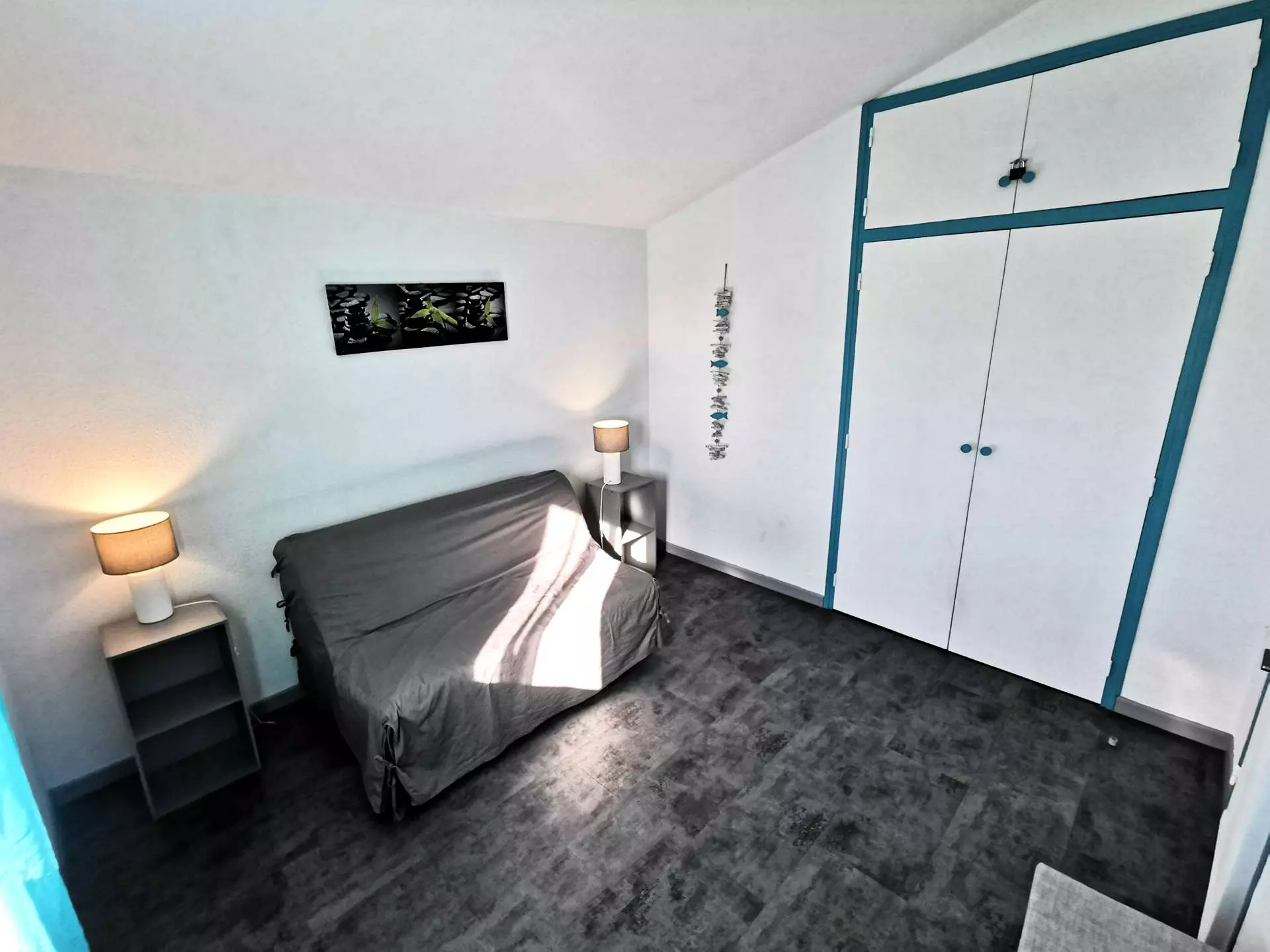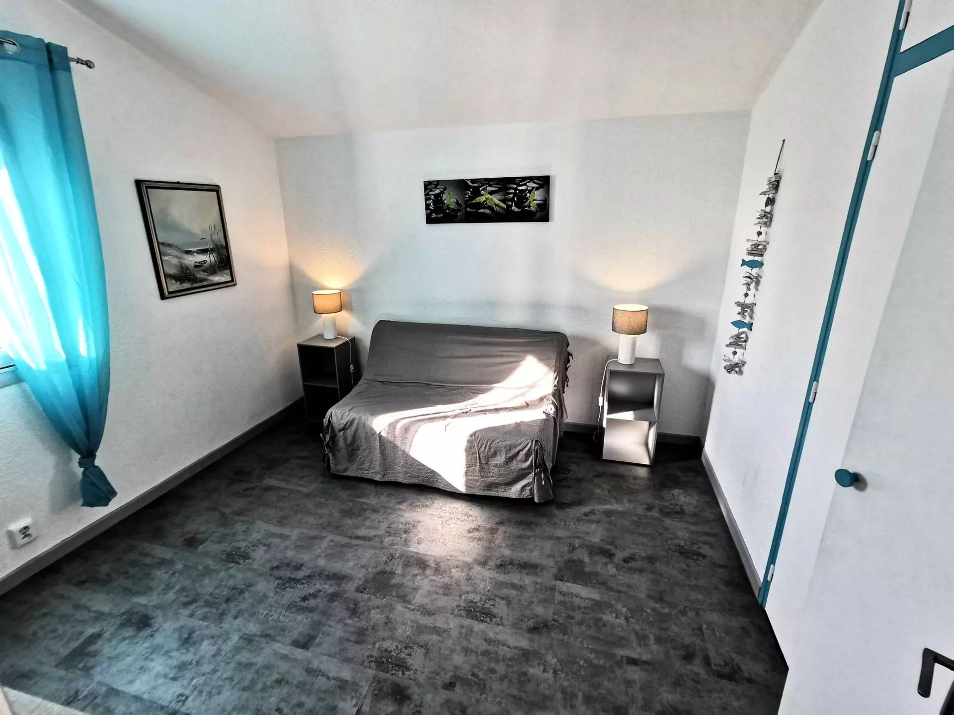 - A bedroom with a double sofa bed