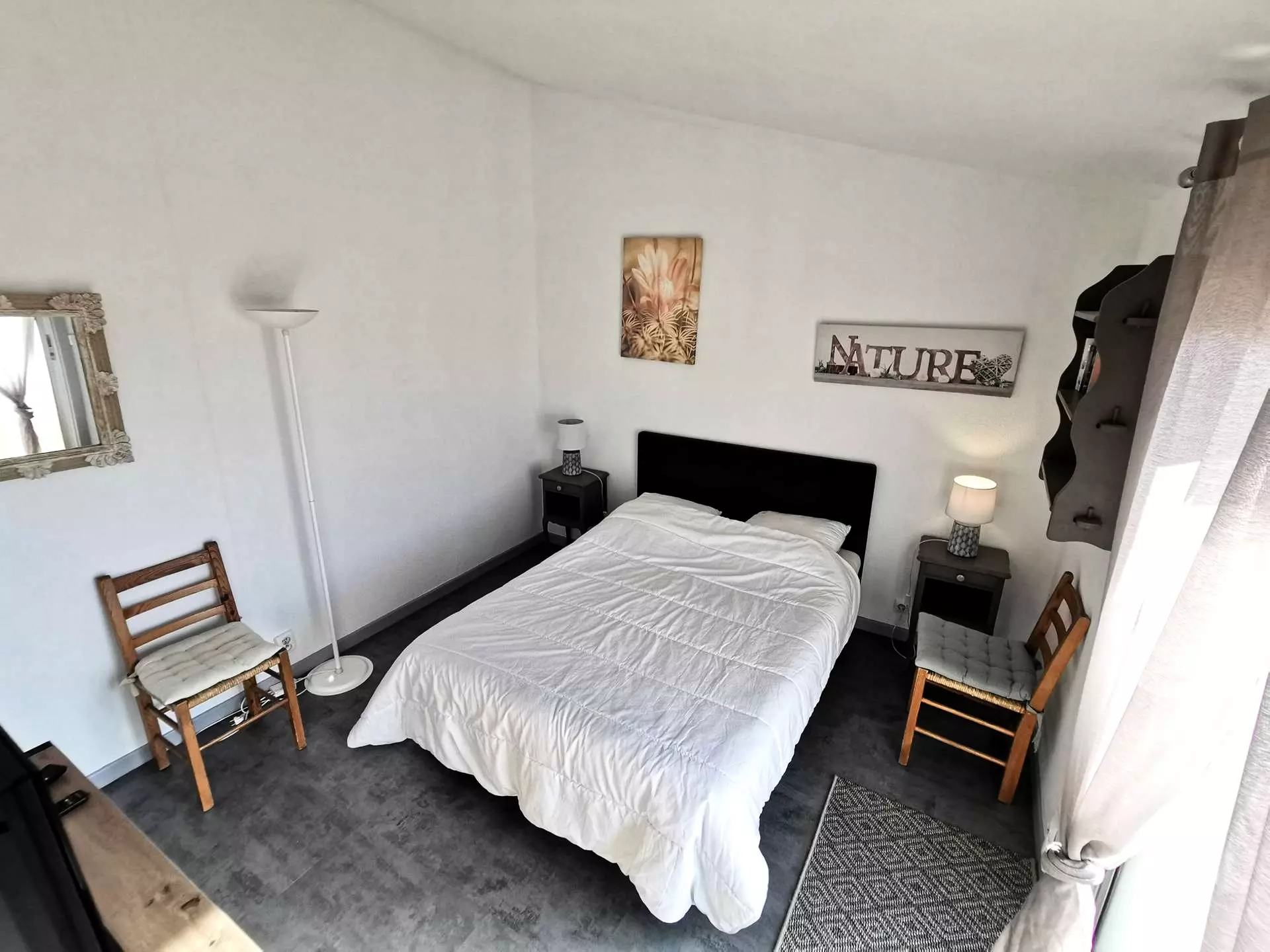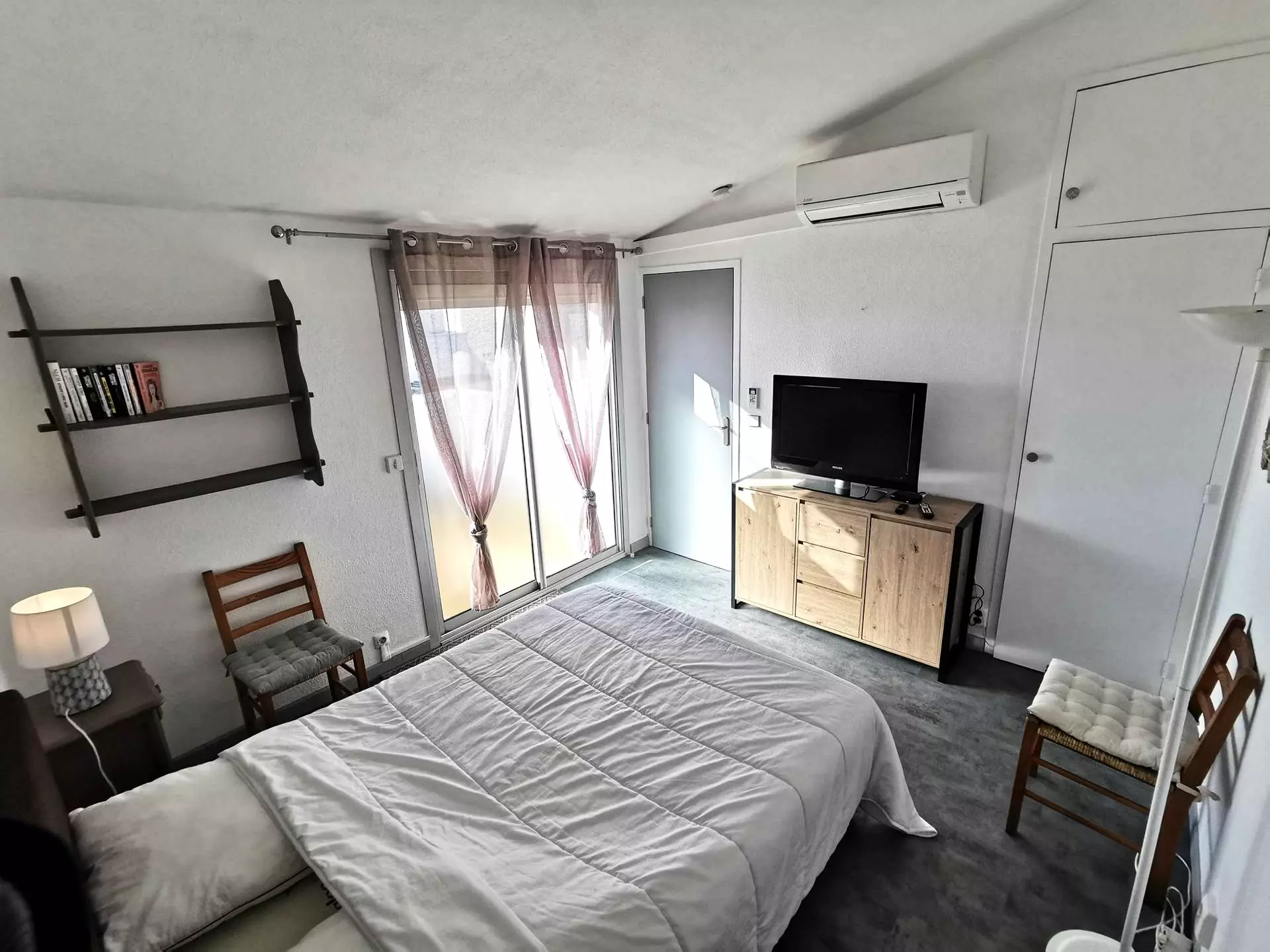 - A bedroom with a double bed