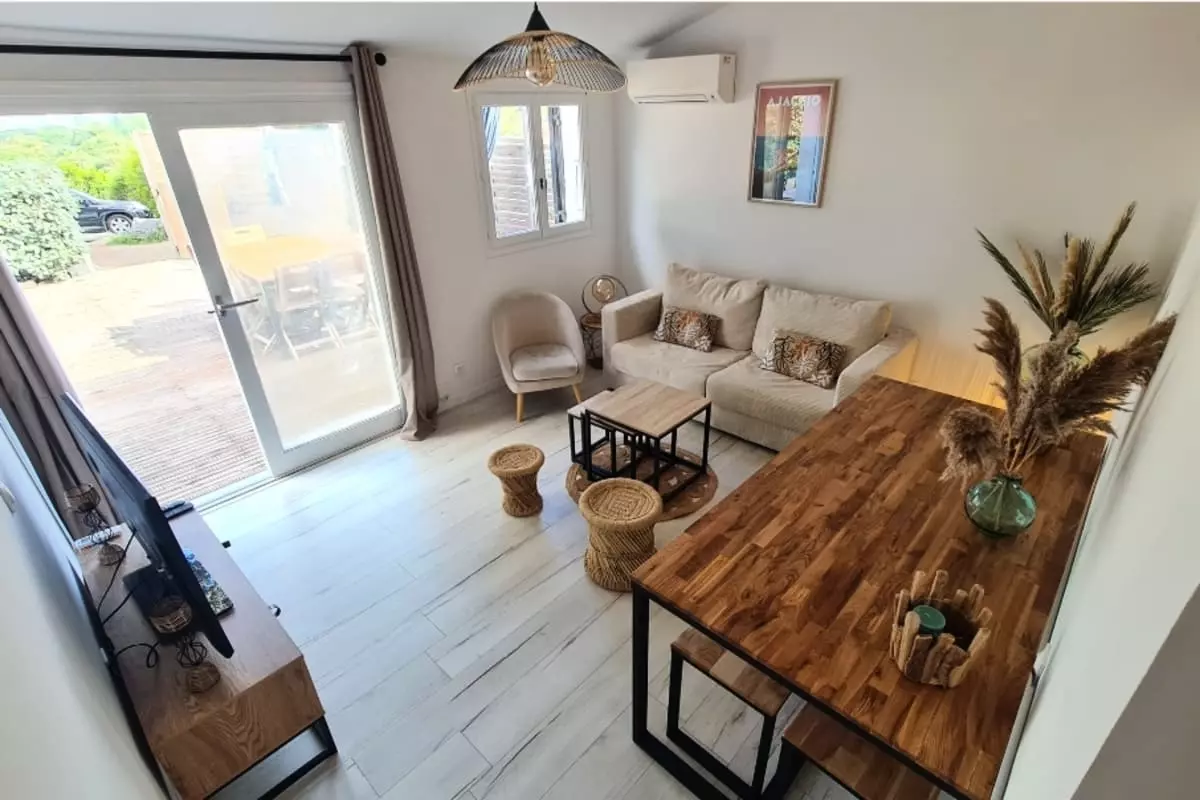 This air-conditioned and well-equipped house, spread over two levels, offers: