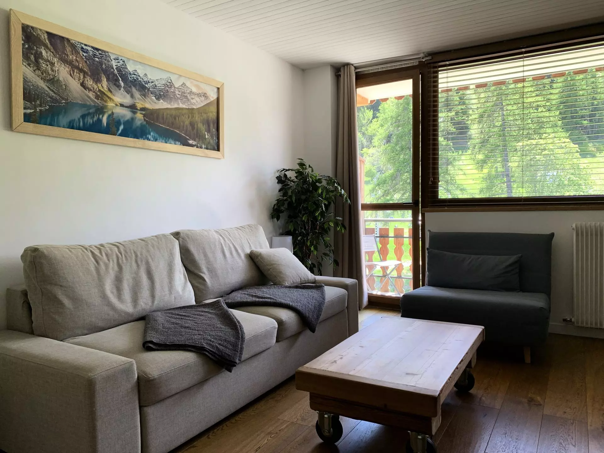 * Living room: 1 convertible rapido type 160, flat screen TV, balcony access, spacious;