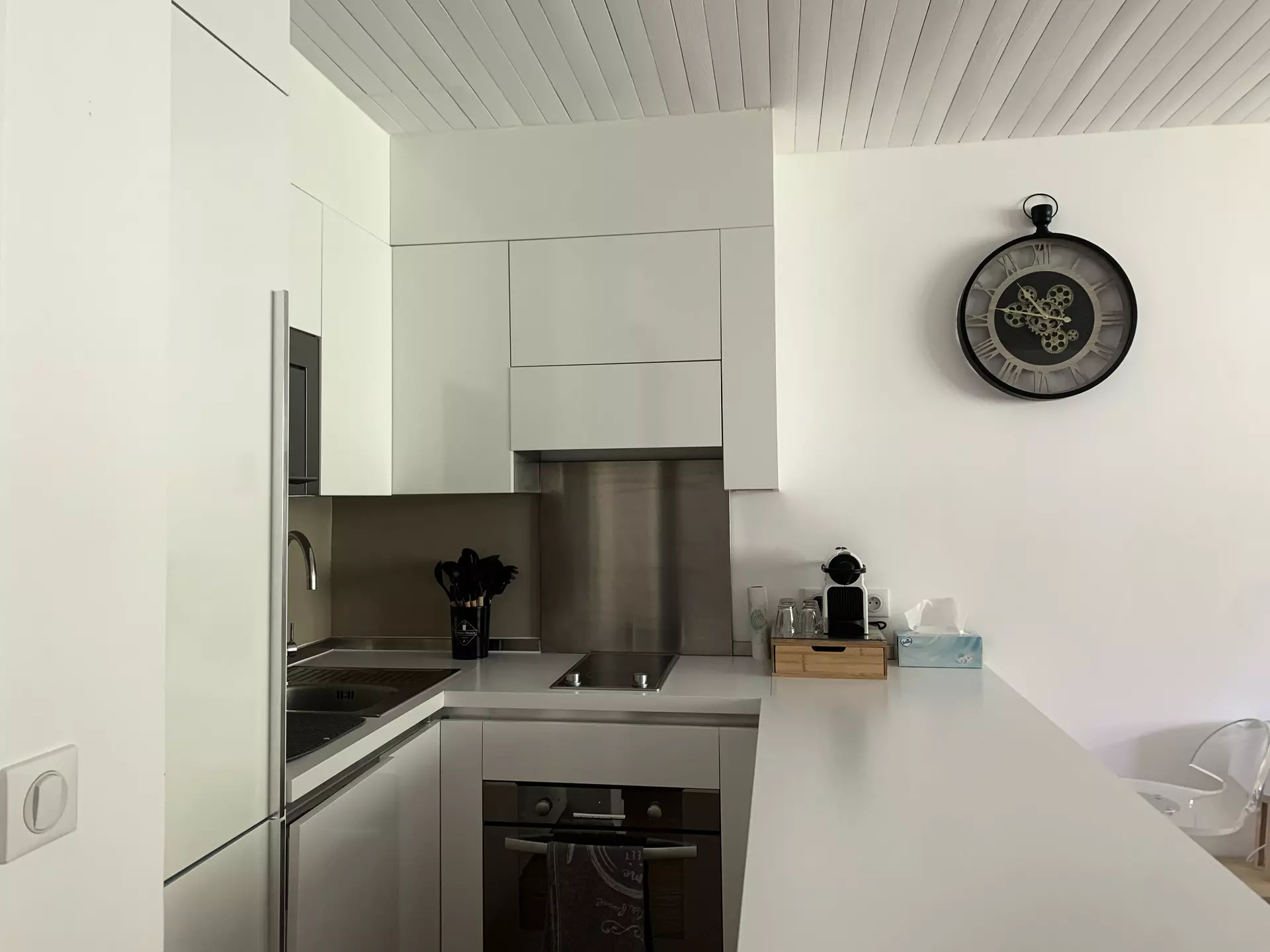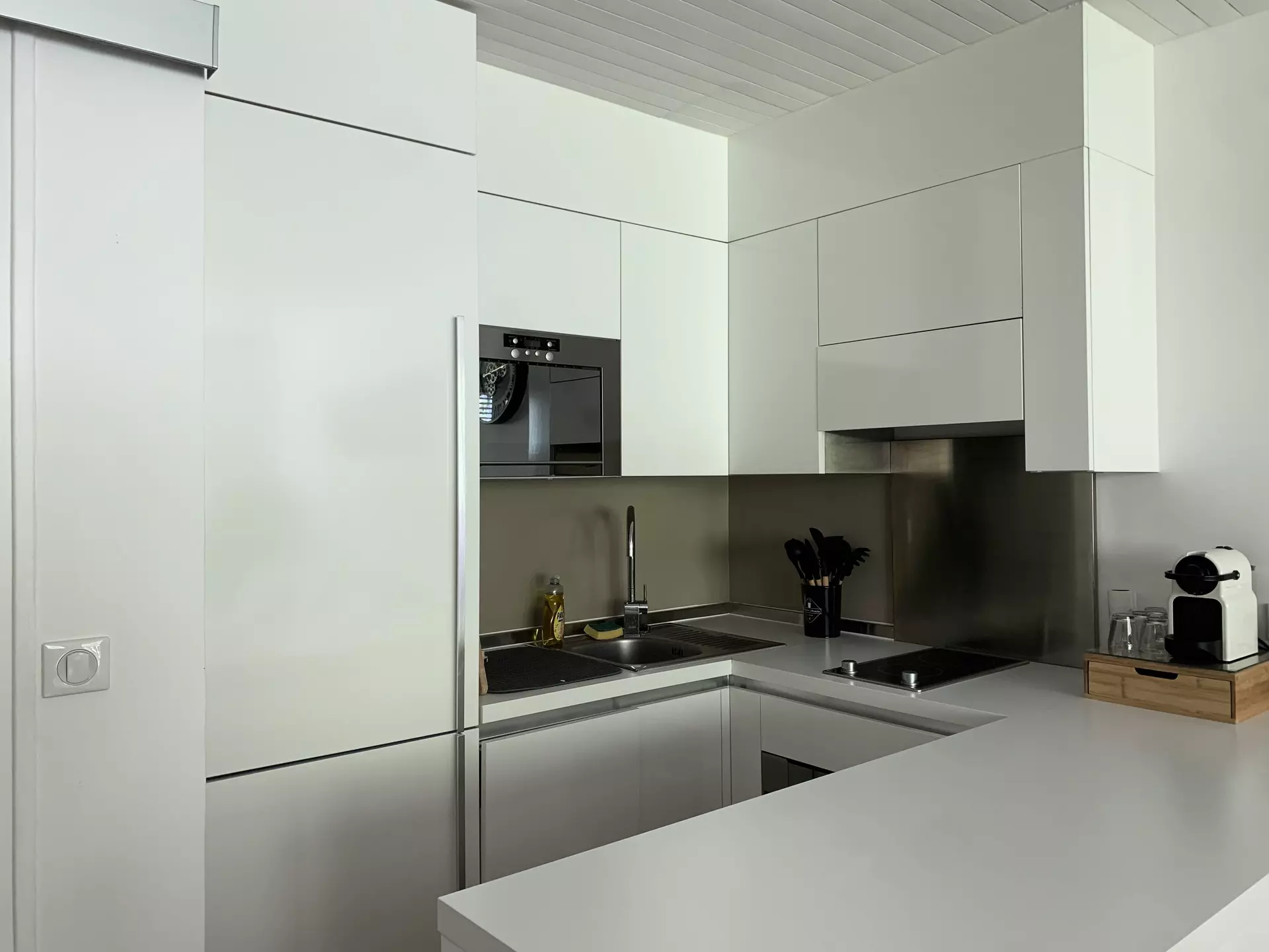 * American-style kitchen area: oven, large refrigerator, ceramic hob, dishwasher, washer-dryer, Nespresso coffee machine, kettle, toaster, raclette machine;